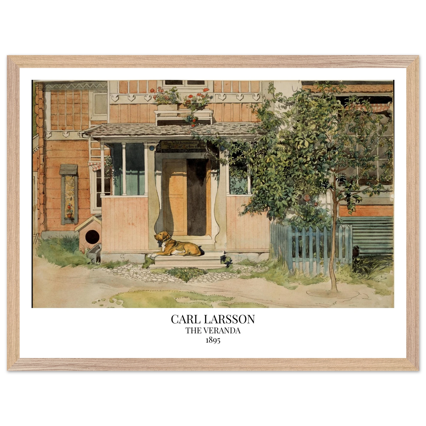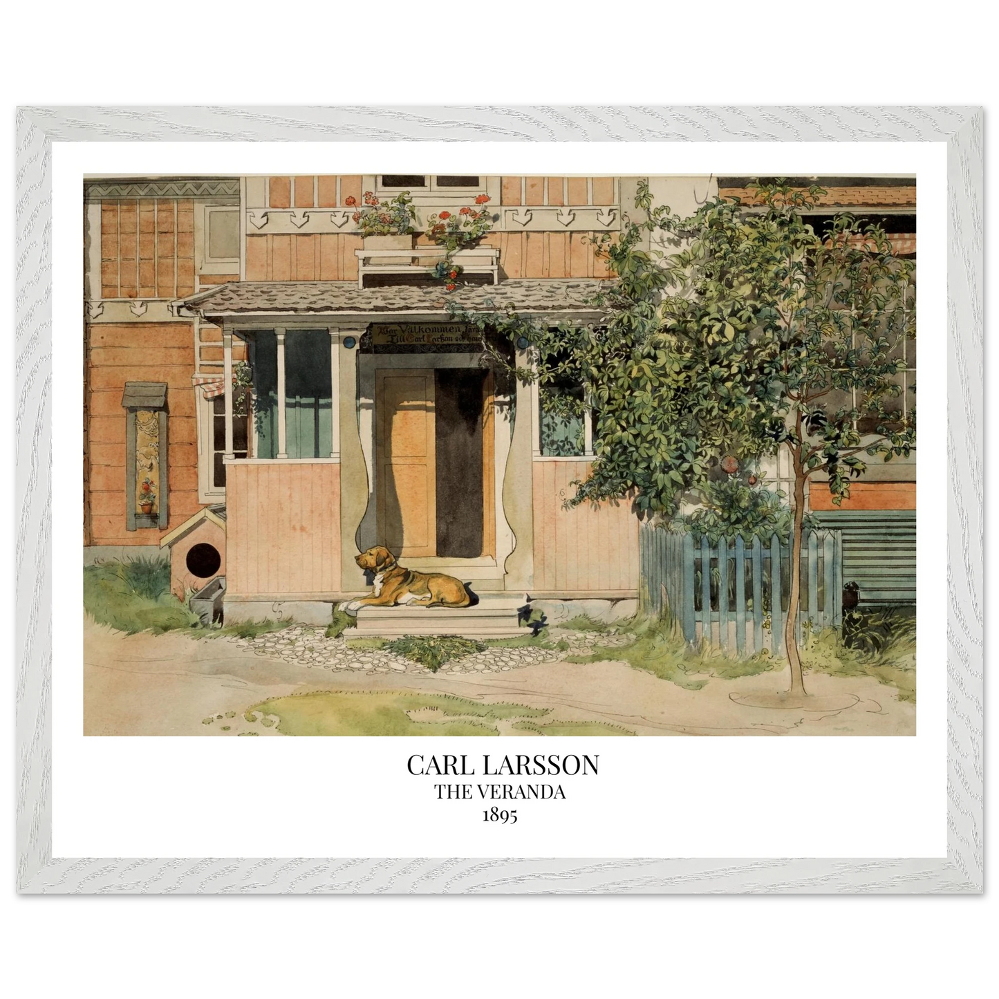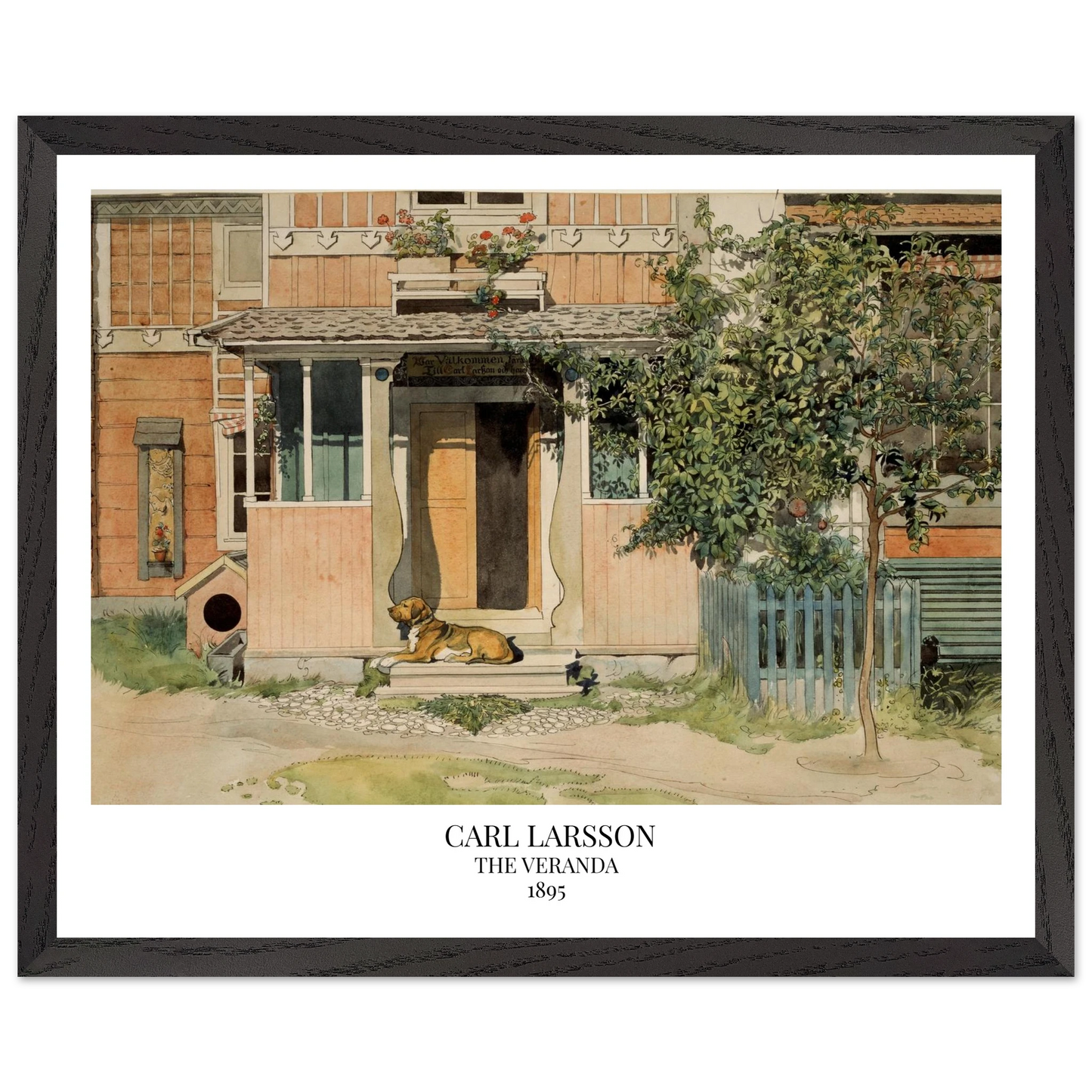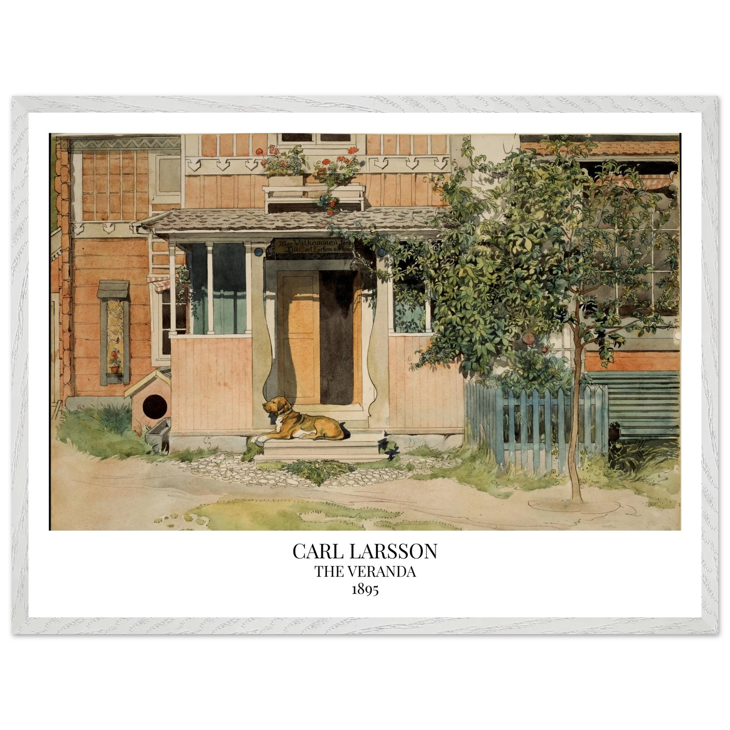 The Veranda (1895) von Carl Larsson zeigt eine verführerische Gartenterrasse seines Hauses in Sundborn, mit üppigen Blumen, verspielten Details und einem ruhenden Hund auf den Stufen. Die feine Aquarelltechnik vermittelt eine friedliche, familiäre und lichtdurchflutete Atmosphäre – typisch für Larssons idyllischen Stil und seine Darstellung des skandinavischen Alltags.