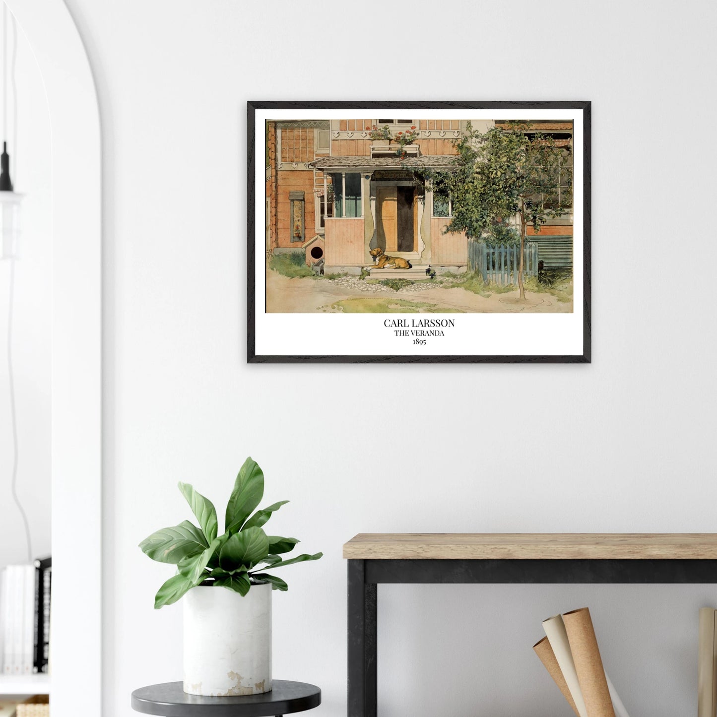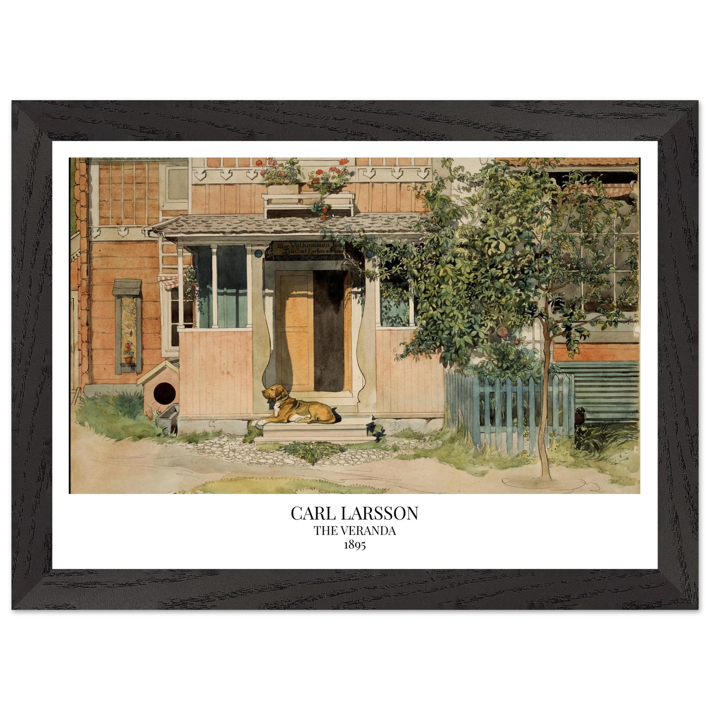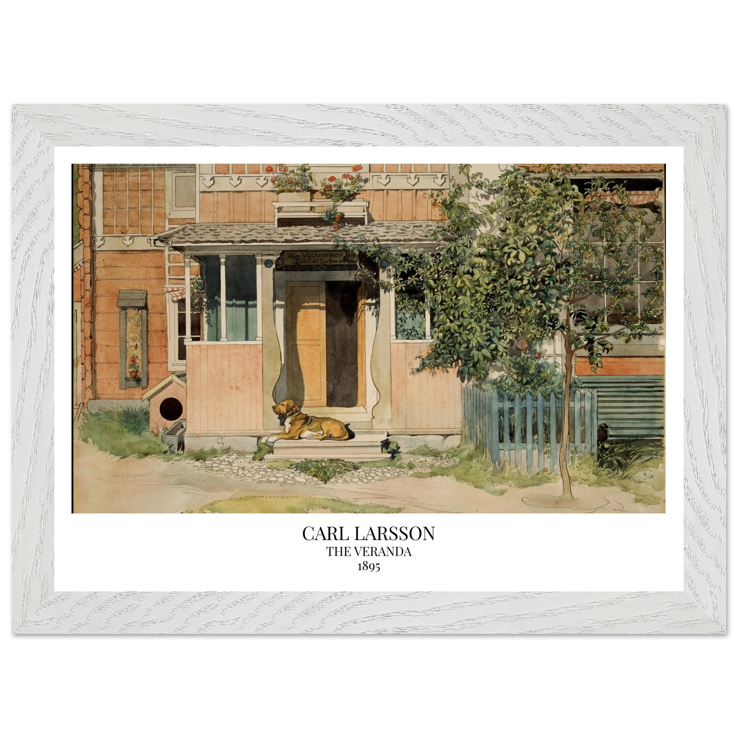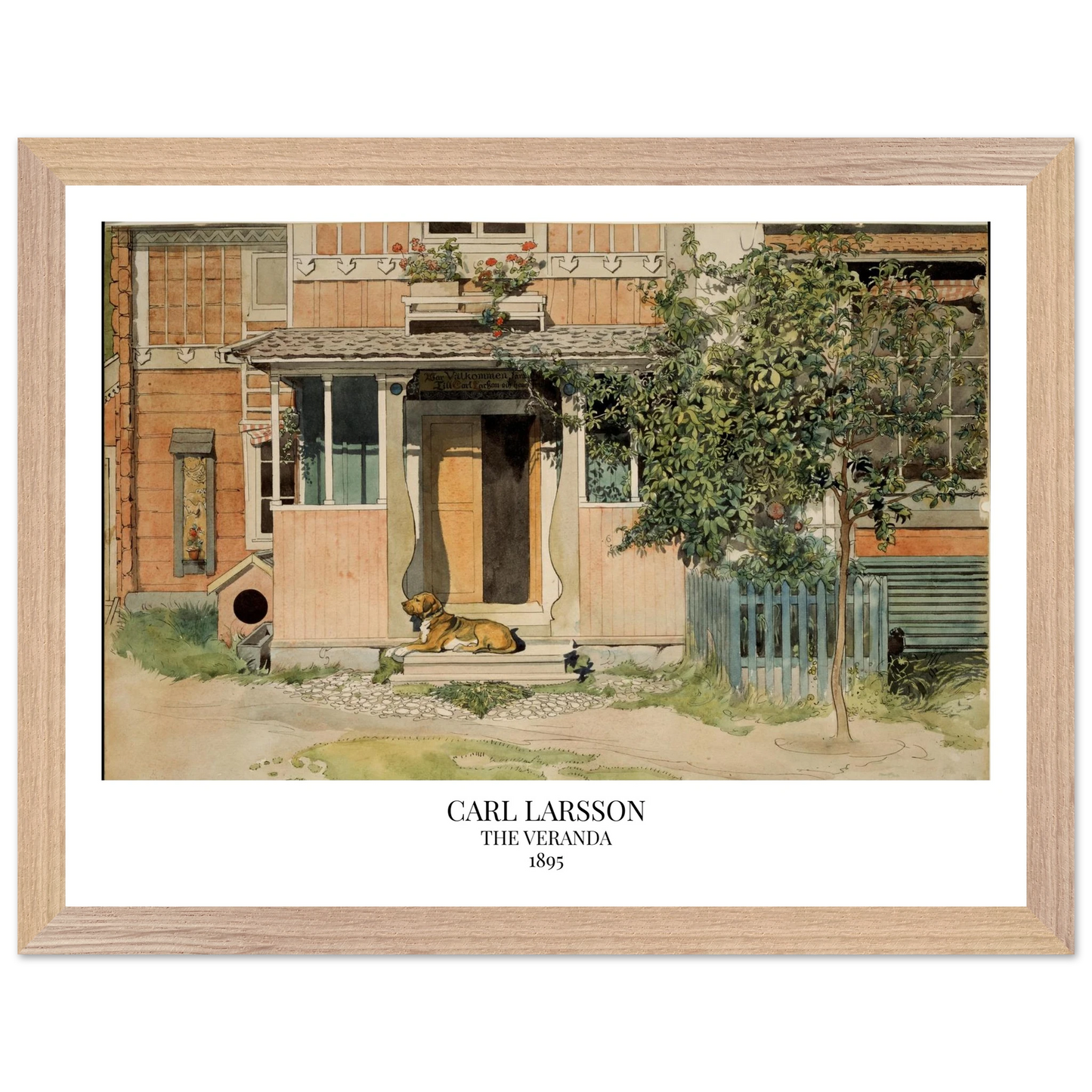 The Veranda (1895) von Carl Larsson zeigt eine verführerische Gartenterrasse seines Hauses in Sundborn, mit üppigen Blumen, verspielten Details und einem ruhenden Hund auf den Stufen. Die feine Aquarelltechnik vermittelt eine friedliche, familiäre und lichtdurchflutete Atmosphäre – typisch für Larssons idyllischen Stil und seine Darstellung des skandinavischen Alltags.