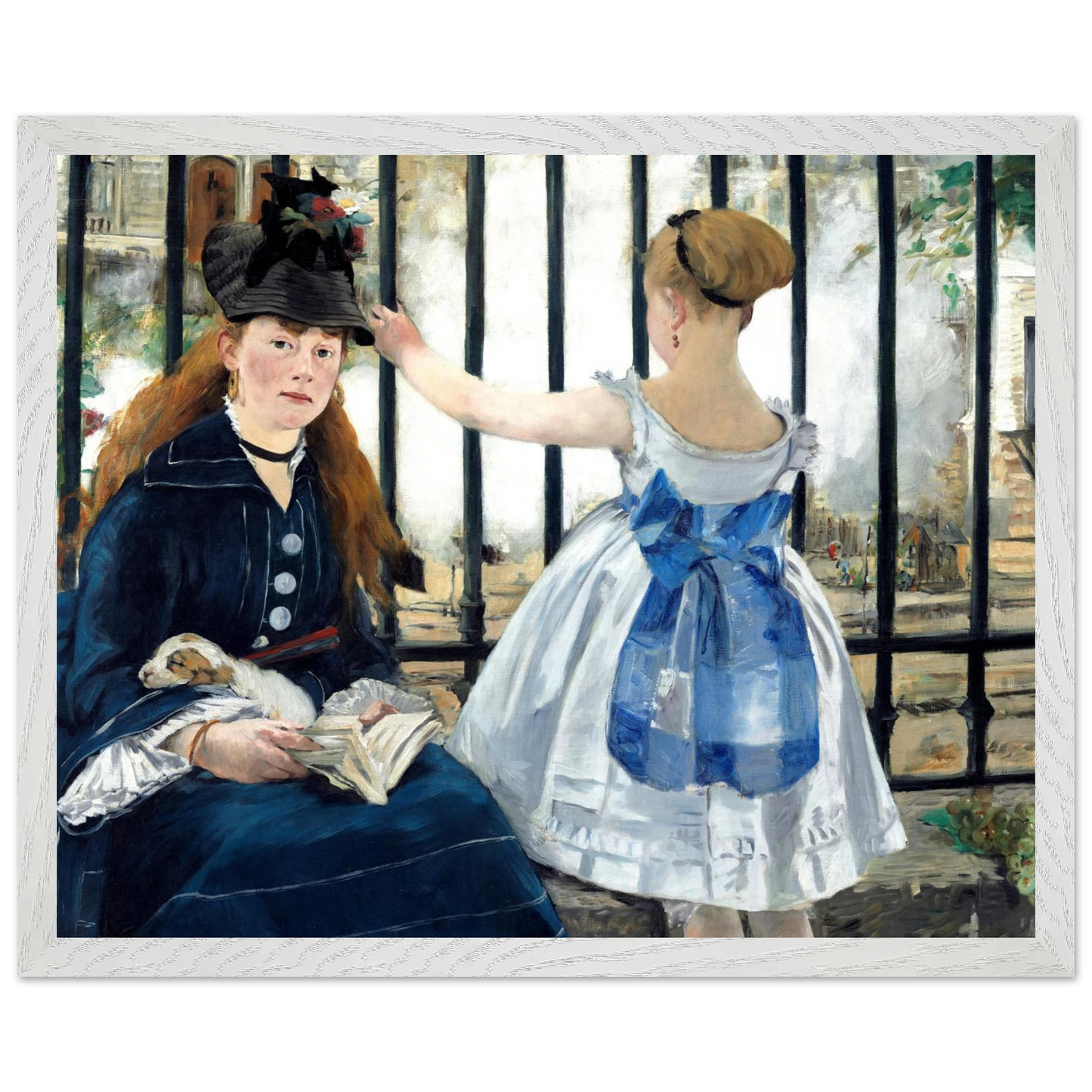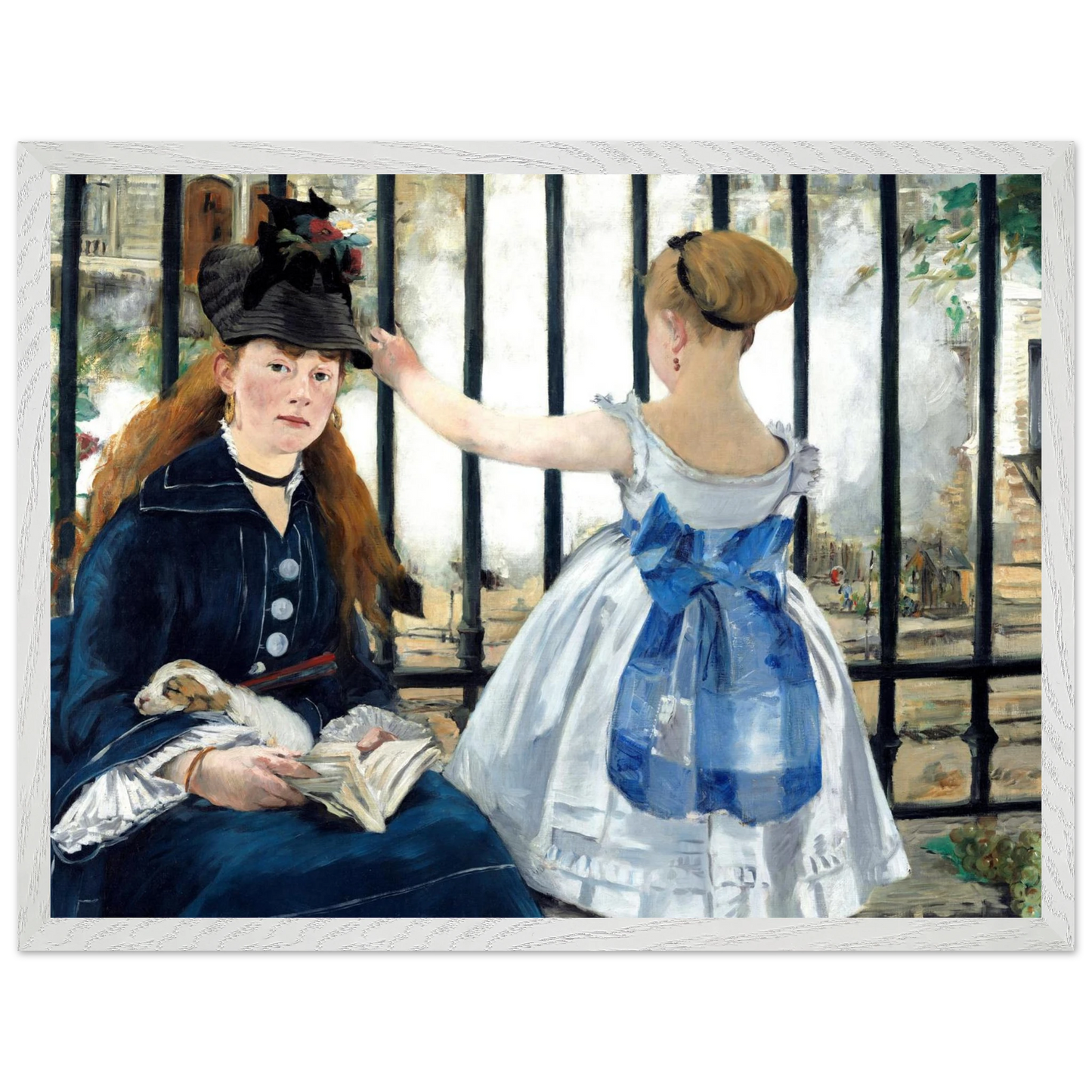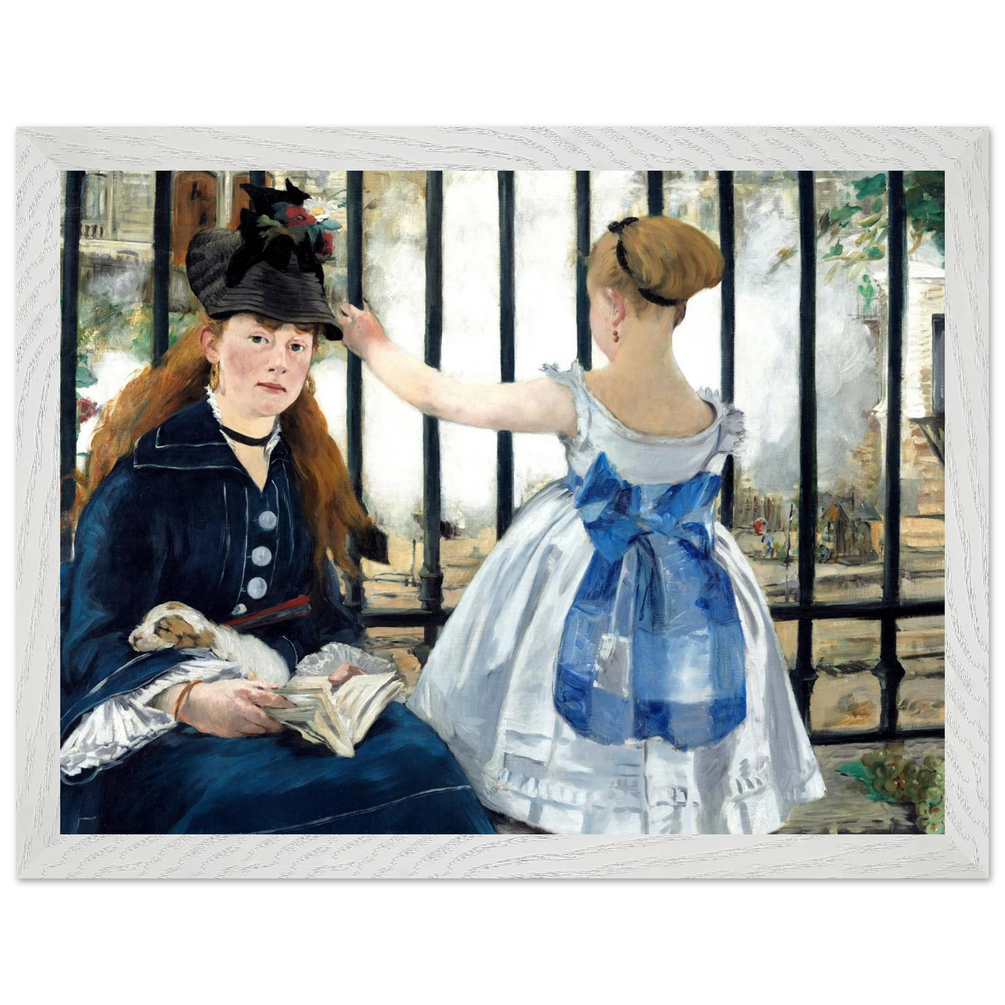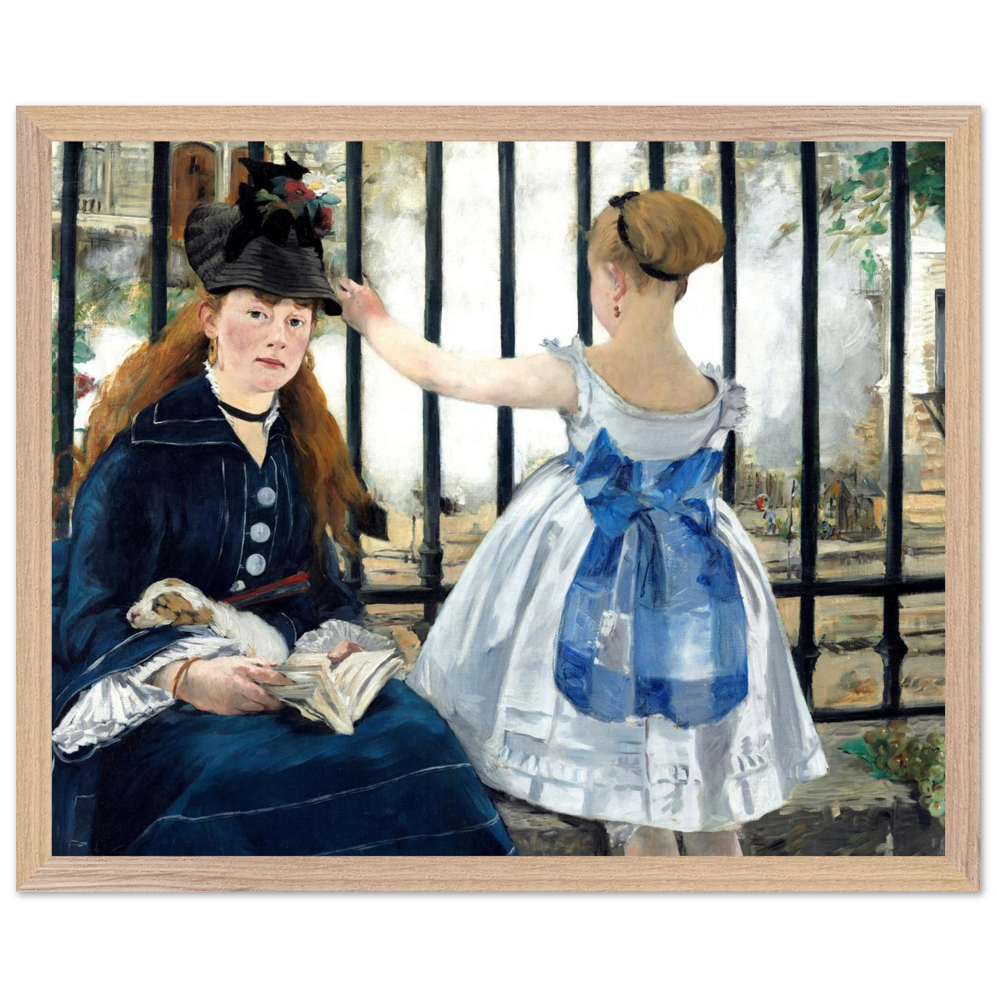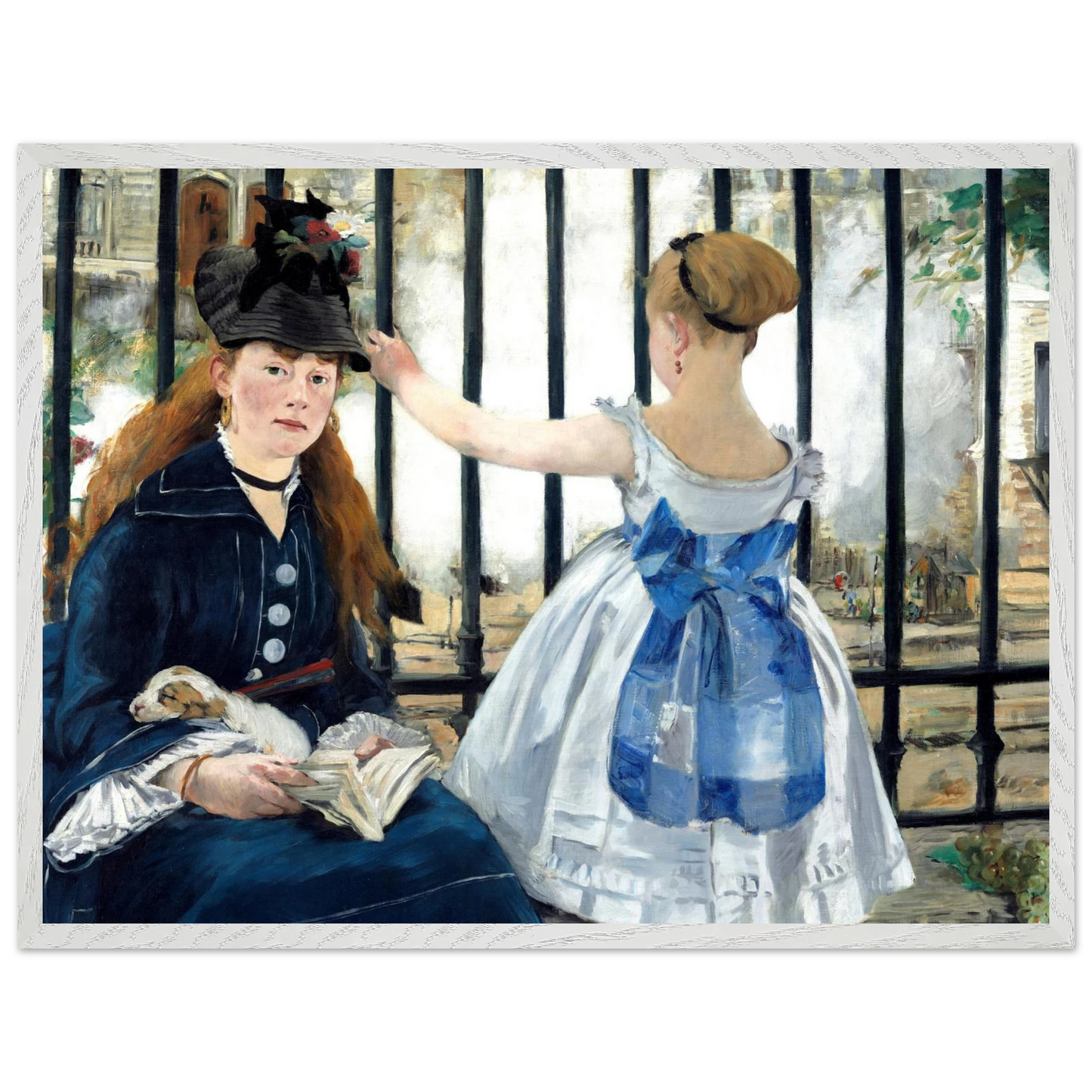 The Railway (1873) von Édouard Manet zeigt eine junge Frau mit einem Buch und ein Kind, das durch ein Gitter auf eine Eisenbahn blickt – eine Szene zwischen Stille und Bewegung. In modernem Bildausschnitt und hellen Farben verbindet Manet urbanes Leben mit stiller Beobachtung und Momentaufnahme.