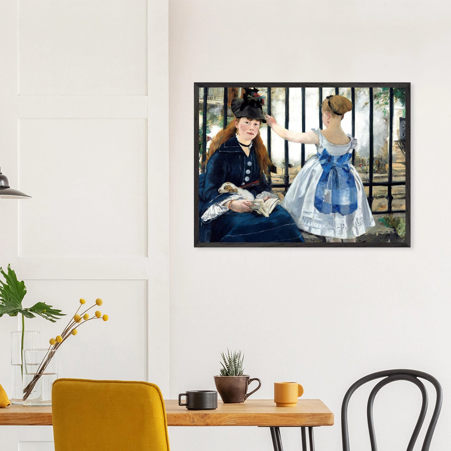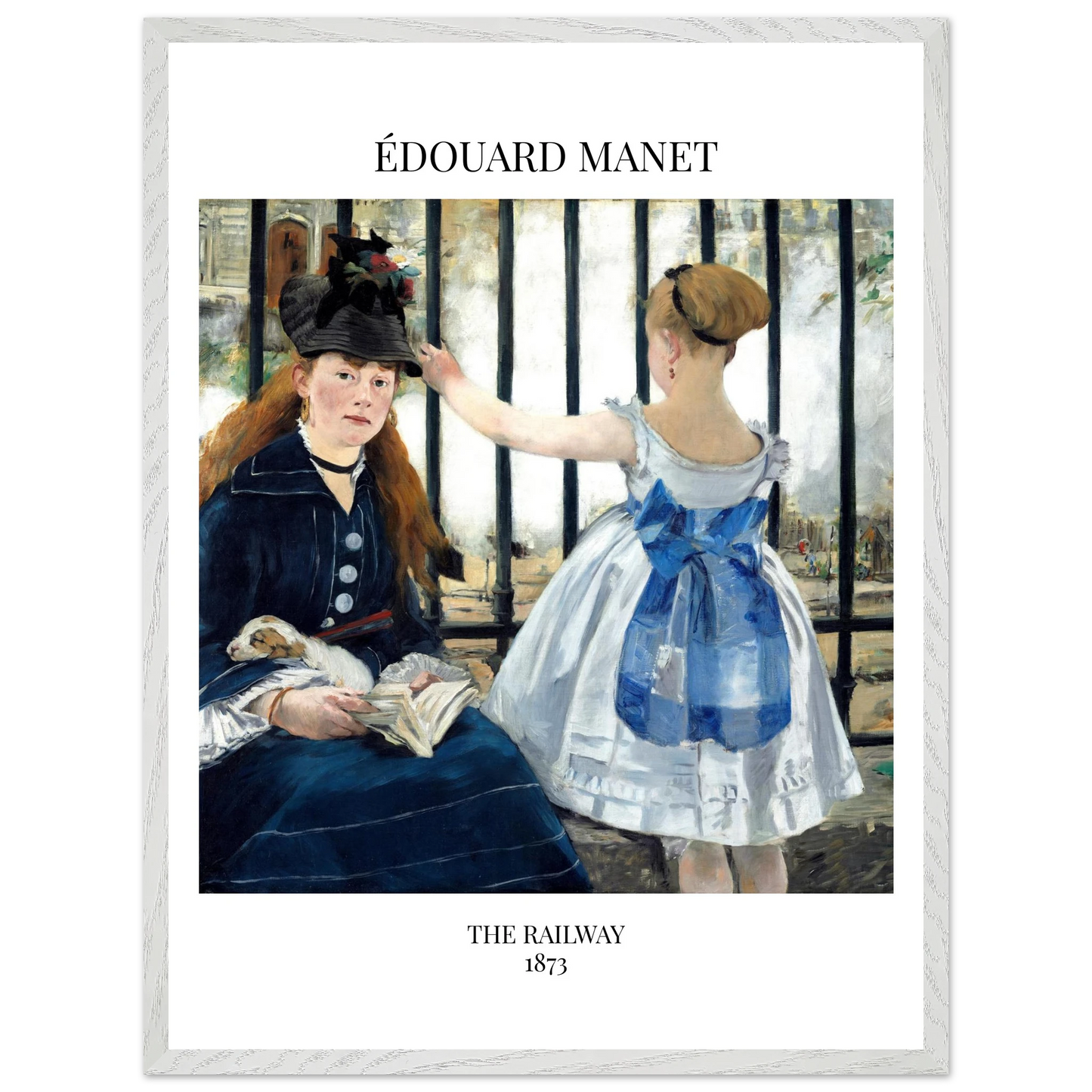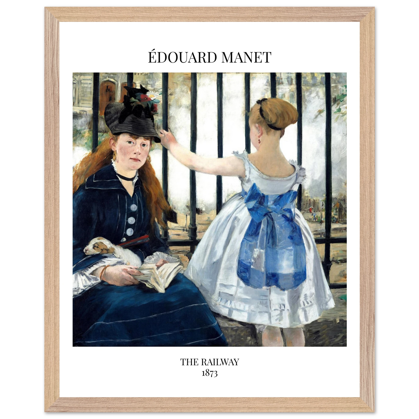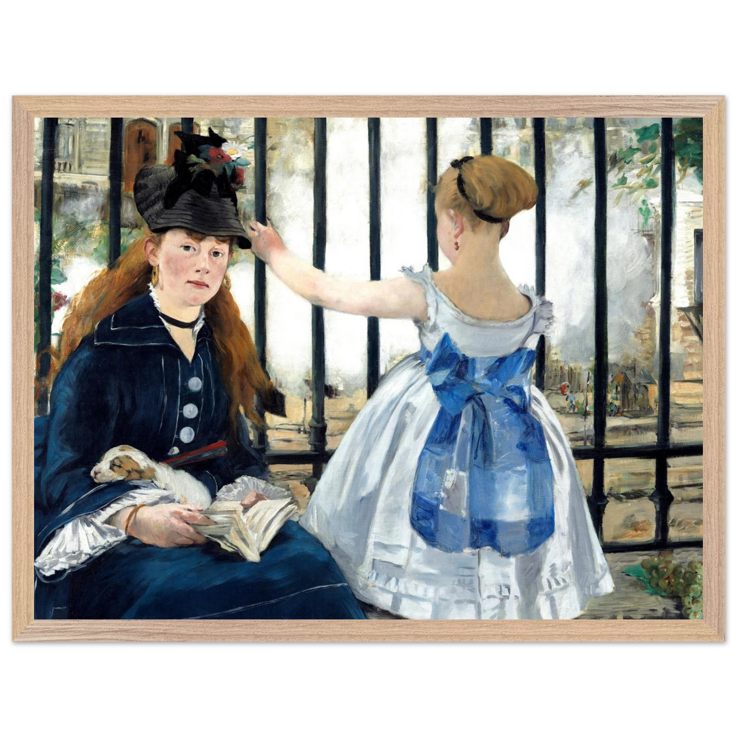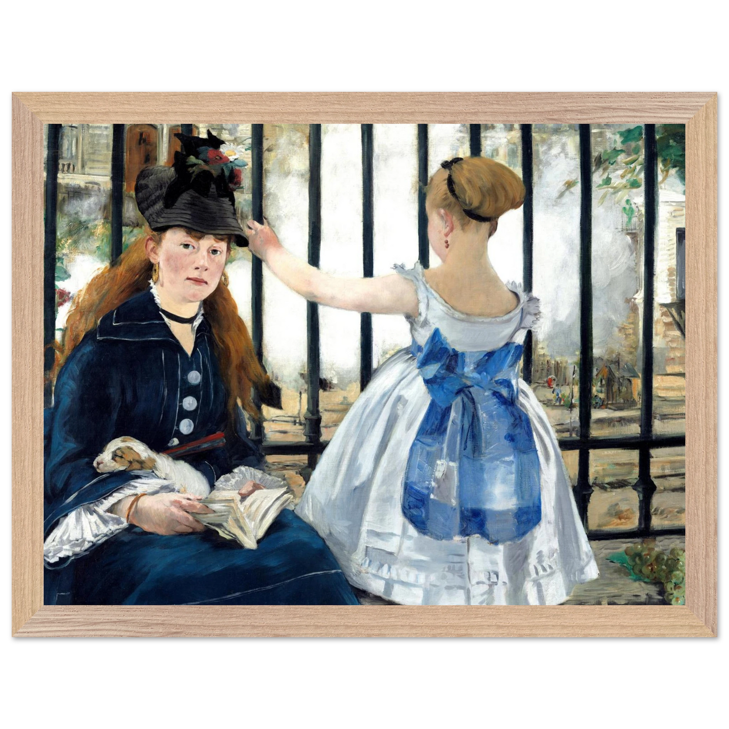The Railway (1873) von Édouard Manet zeigt eine junge Frau mit einem Buch und ein Kind, das durch ein Gitter auf eine Eisenbahn blickt – eine Szene zwischen Stille und Bewegung. In modernem Bildausschnitt und hellen Farben verbindet Manet urbanes Leben mit stiller Beobachtung und Momentaufnahme.