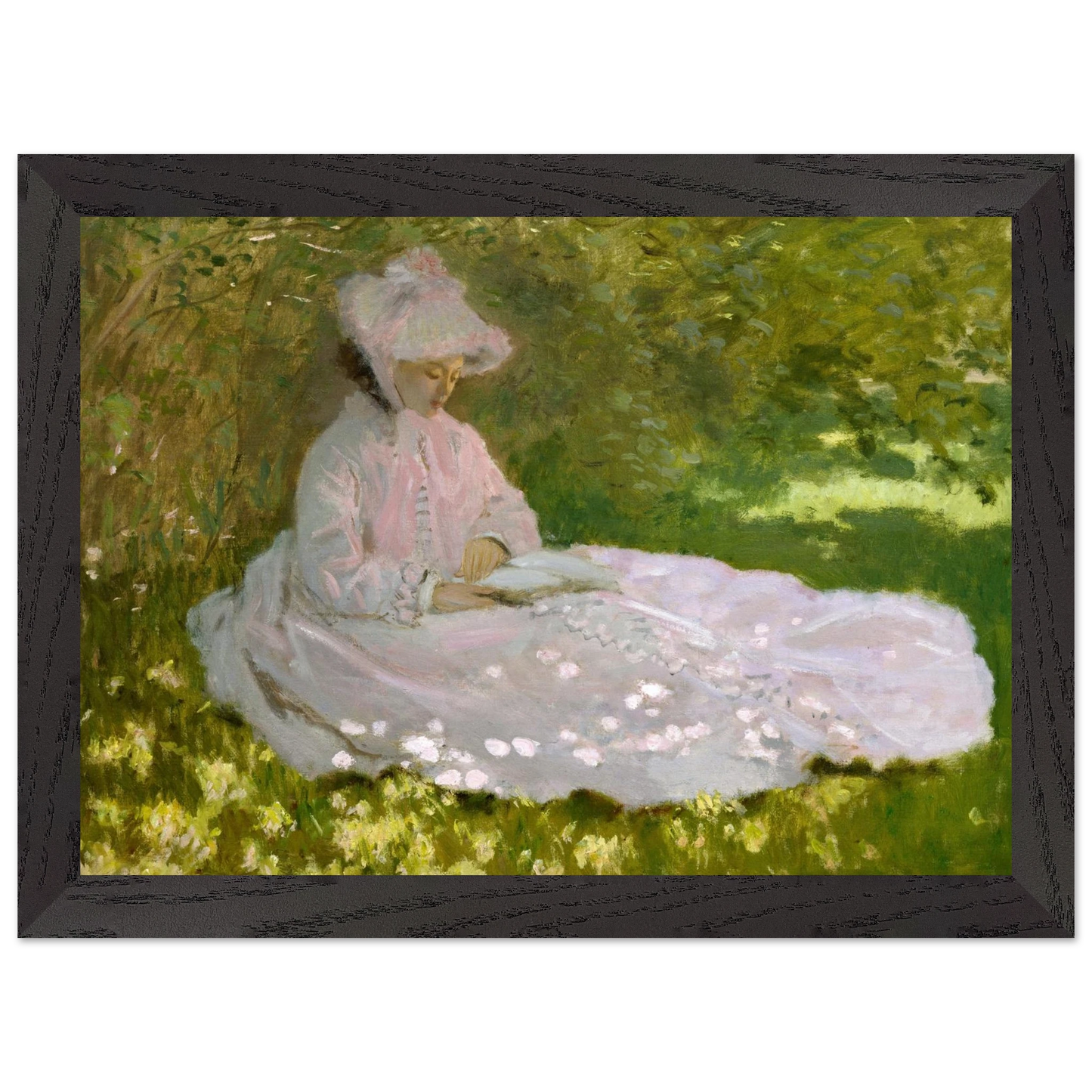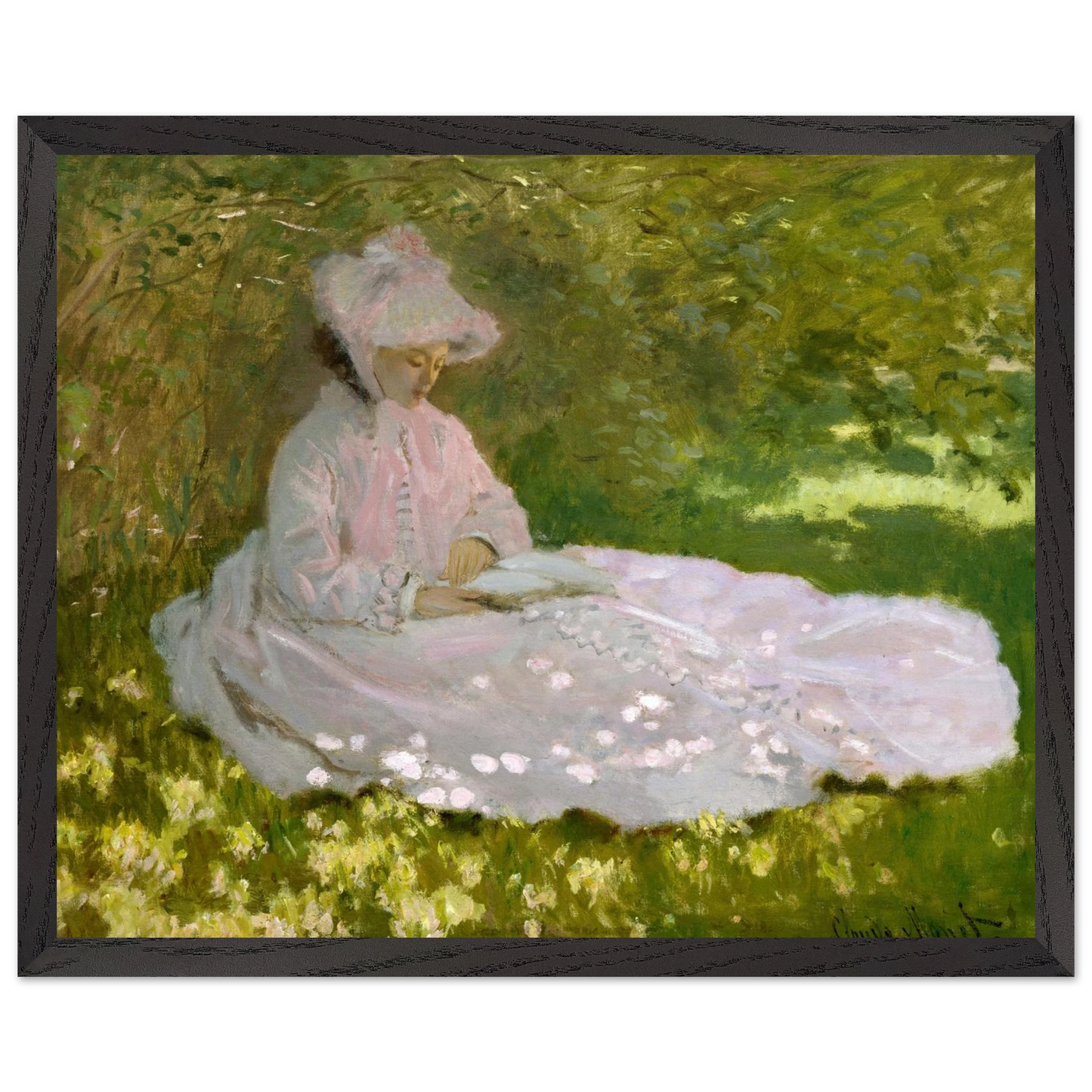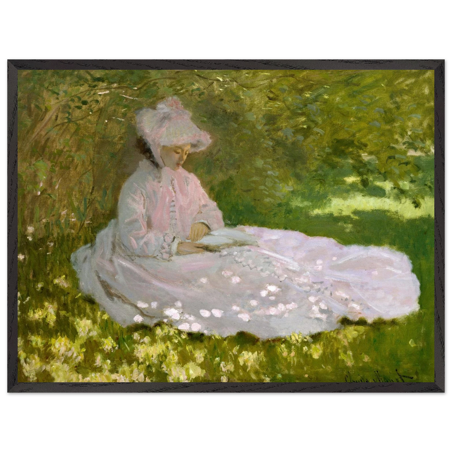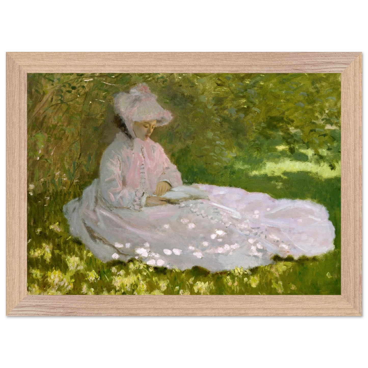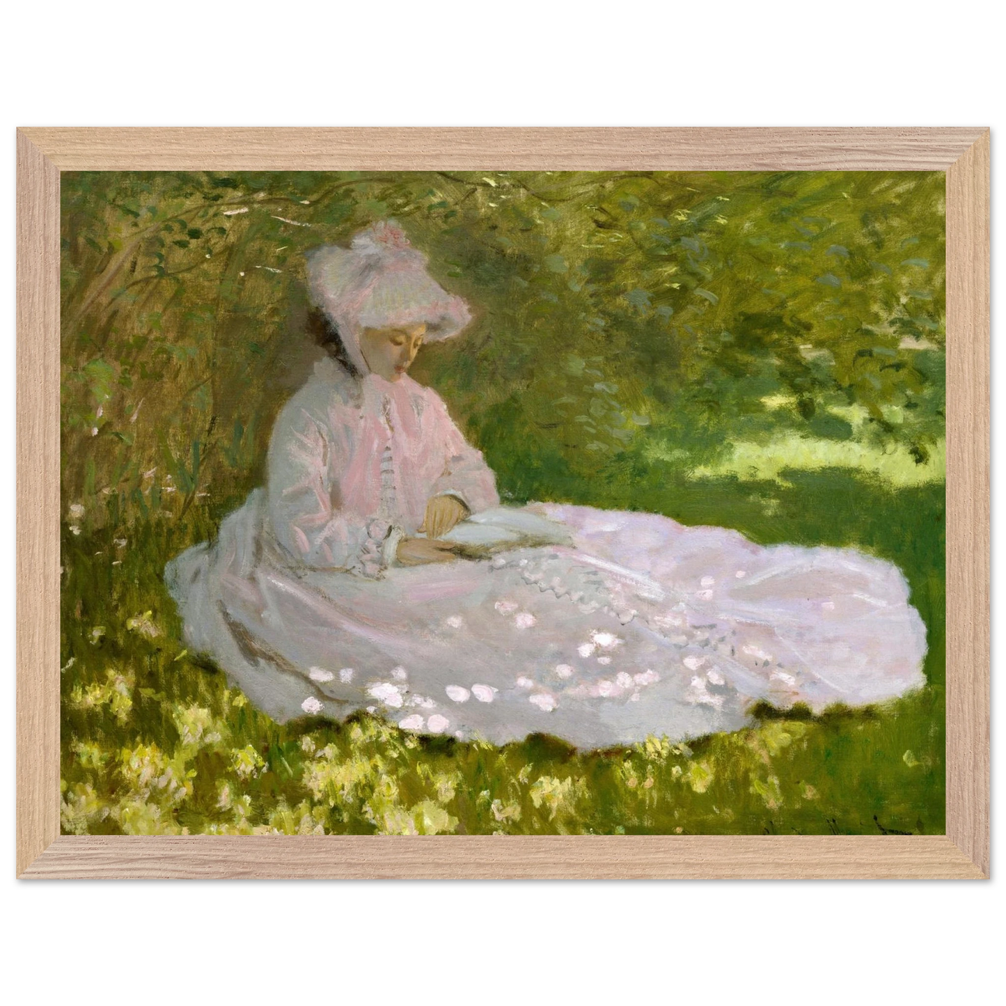 The Reader (1872) von Claude Monet zeigt Camille Monet in einem weißen Kleid, vertieft in ein Buch, umgeben von blühender Gartenvegetation. In zarten Farben und weichem Licht fängt das Gemälde einen stillen Moment der Konzentration und Ruhe ein – ein intimes Porträt des Alltagslebens.