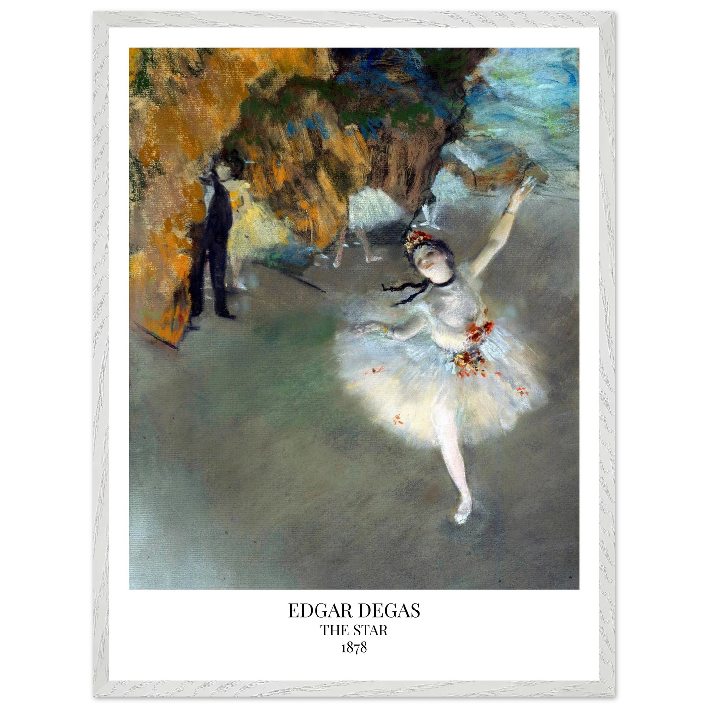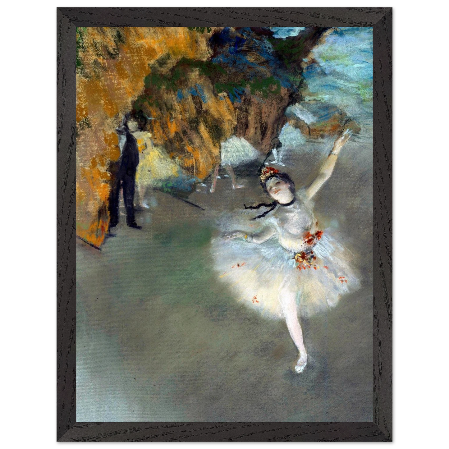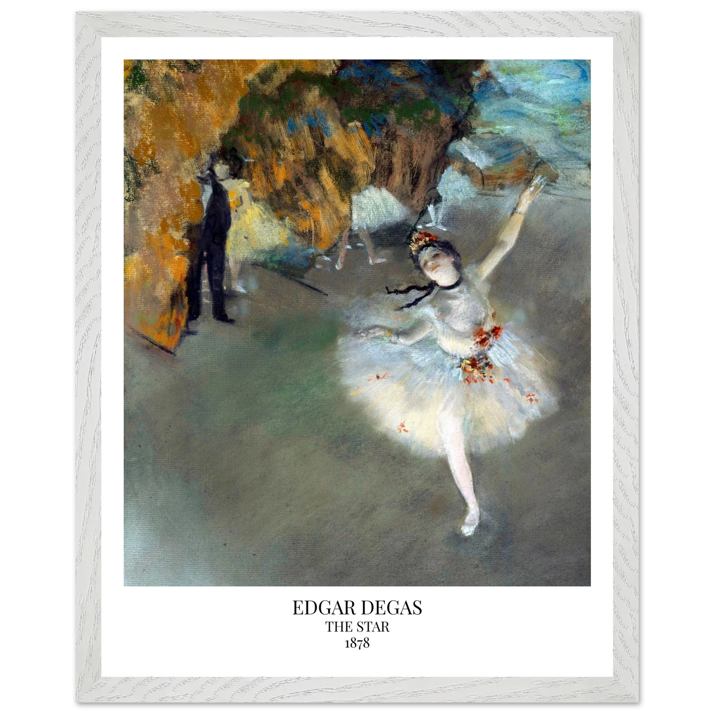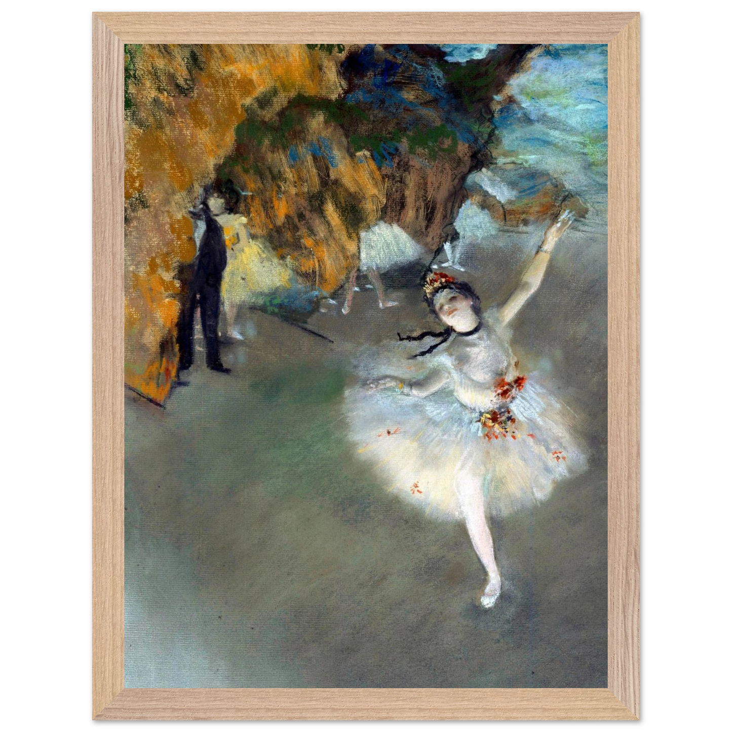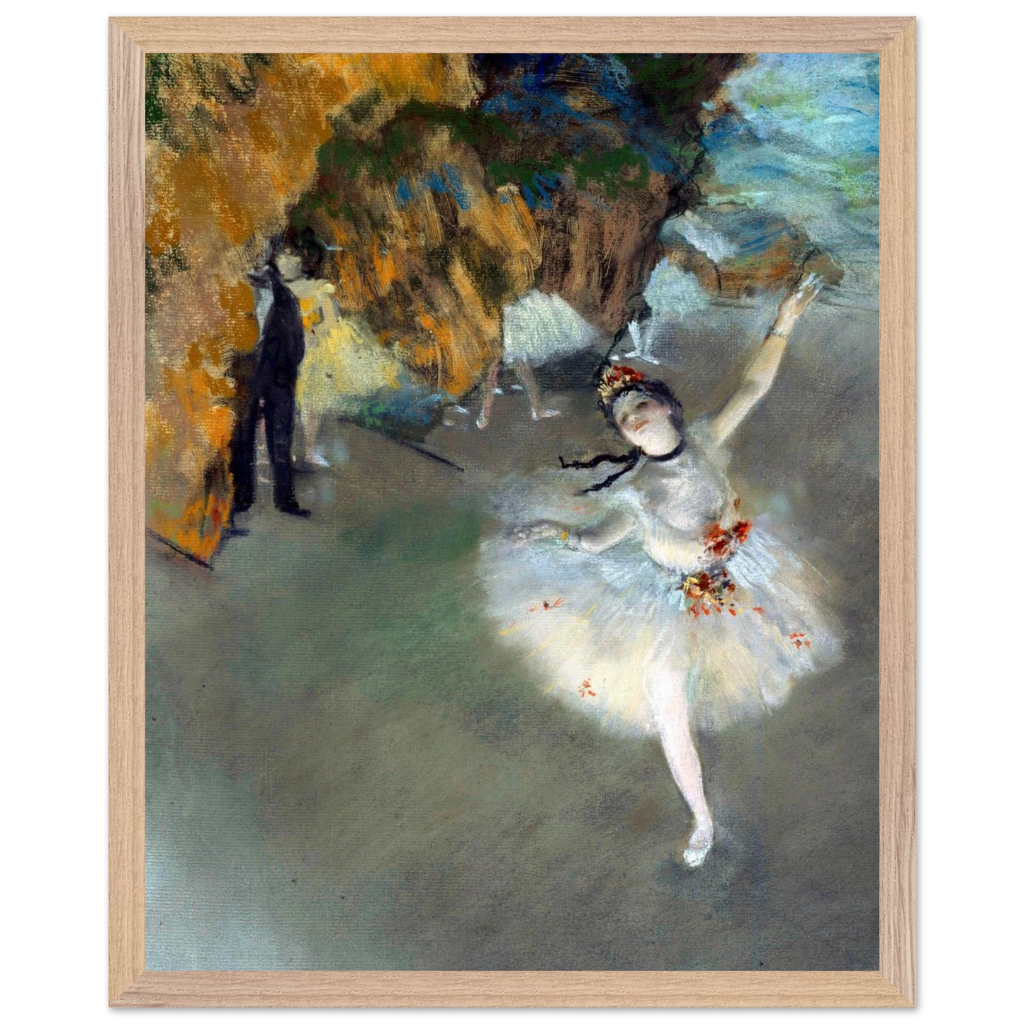 The Star (L'Étoile, ca. 1878) von Edgar Degas zeigt eine Primaballerina inmitten ihres Auftritts auf der Bühne, im vollen Rampenlicht. Mit feinem Gespür für Bewegung, Perspektive und Licht fängt Degas den magischen Moment der Aufführung ebenso ein wie die verborgene Welt hinter den Kulissen.