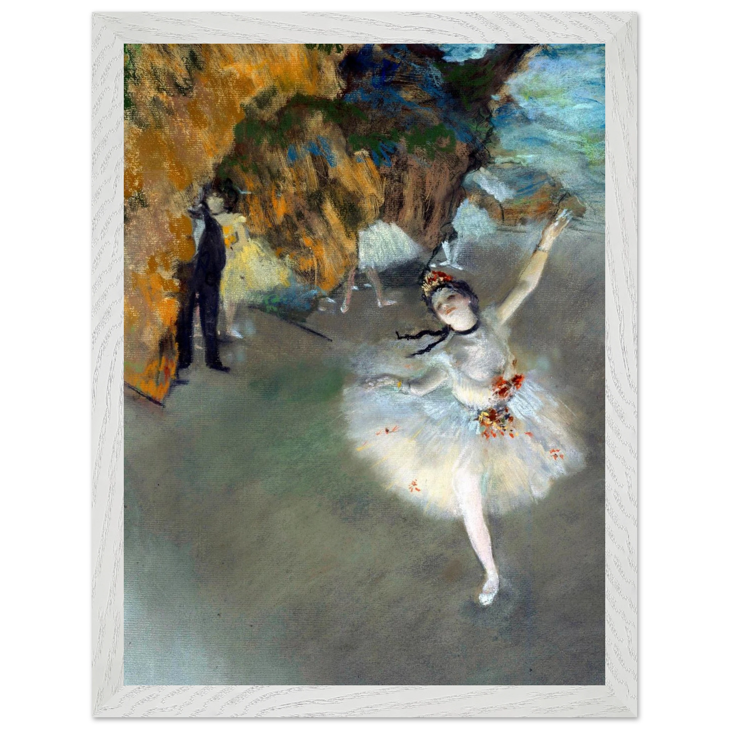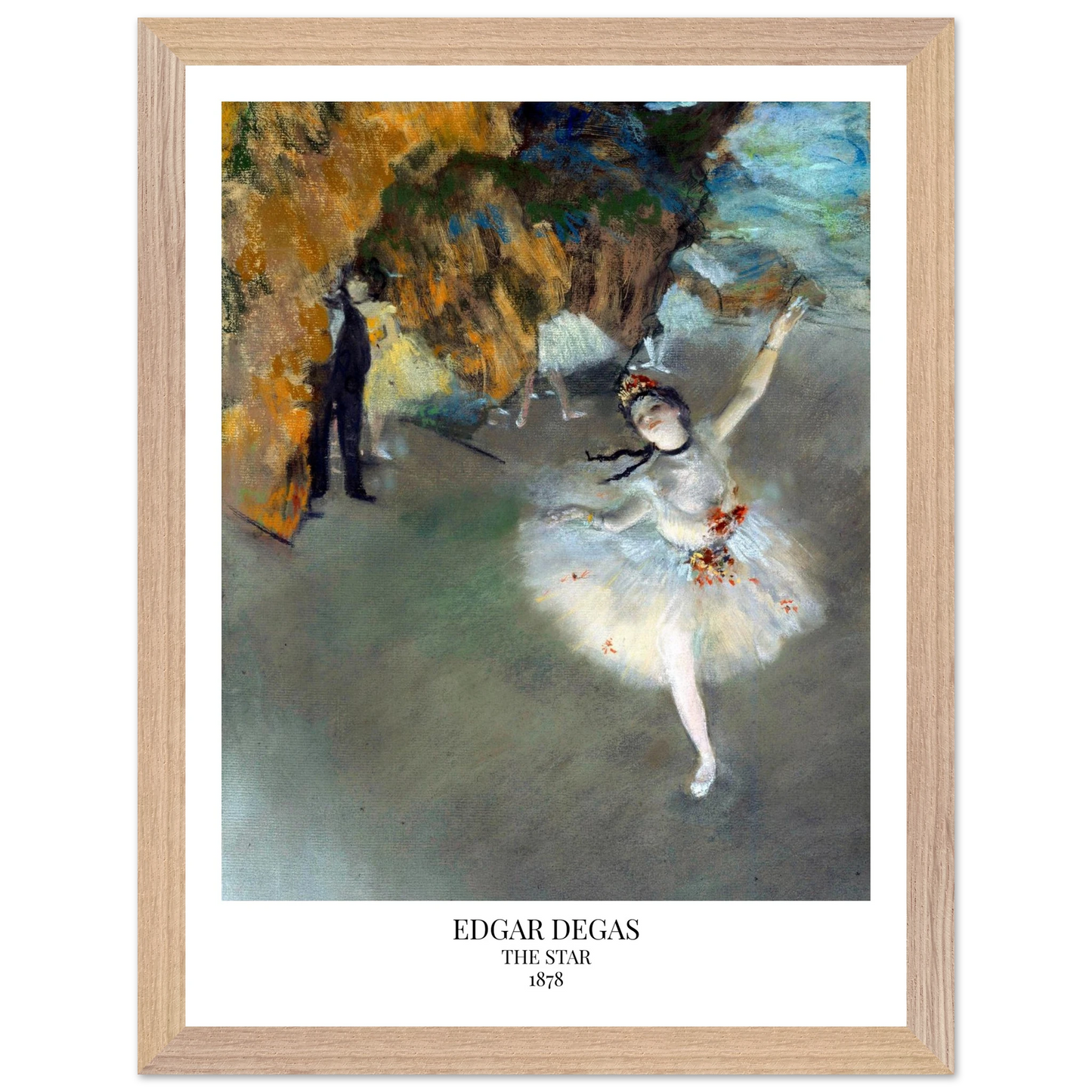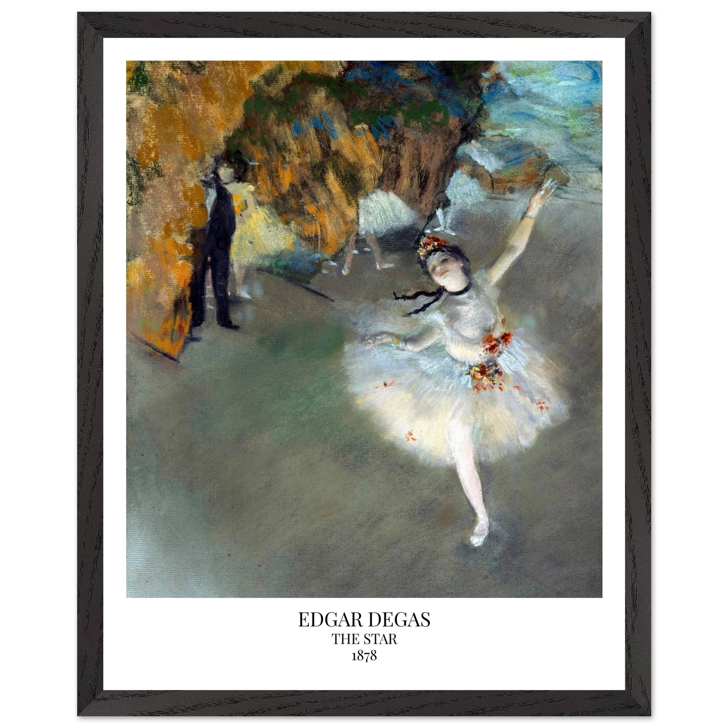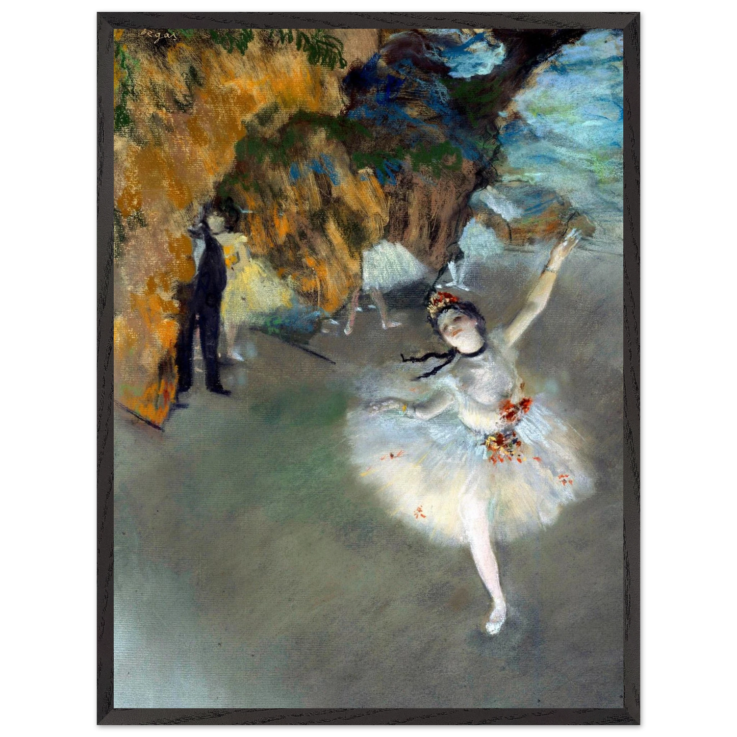 The Star (L'Étoile, ca. 1878) von Edgar Degas zeigt eine Primaballerina inmitten ihres Auftritts auf der Bühne, im vollen Rampenlicht. Mit feinem Gespür für Bewegung, Perspektive und Licht fängt Degas den magischen Moment der Aufführung ebenso ein wie die verborgene Welt hinter den Kulissen.