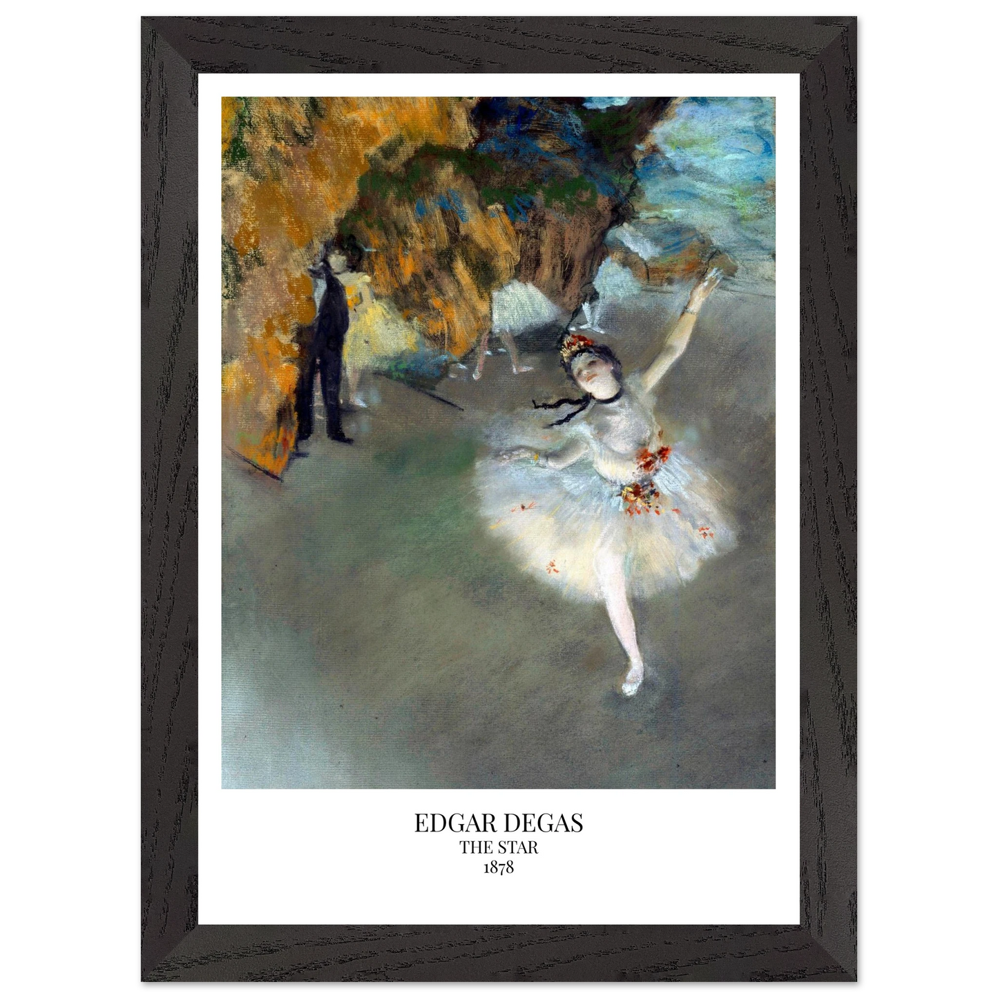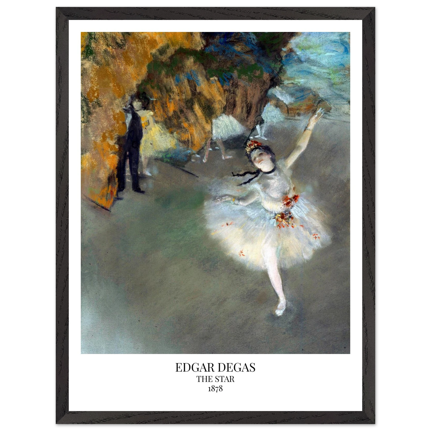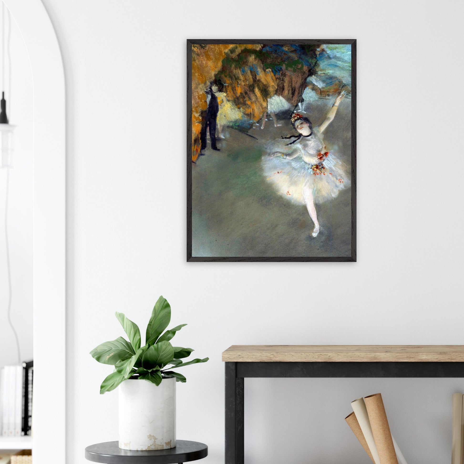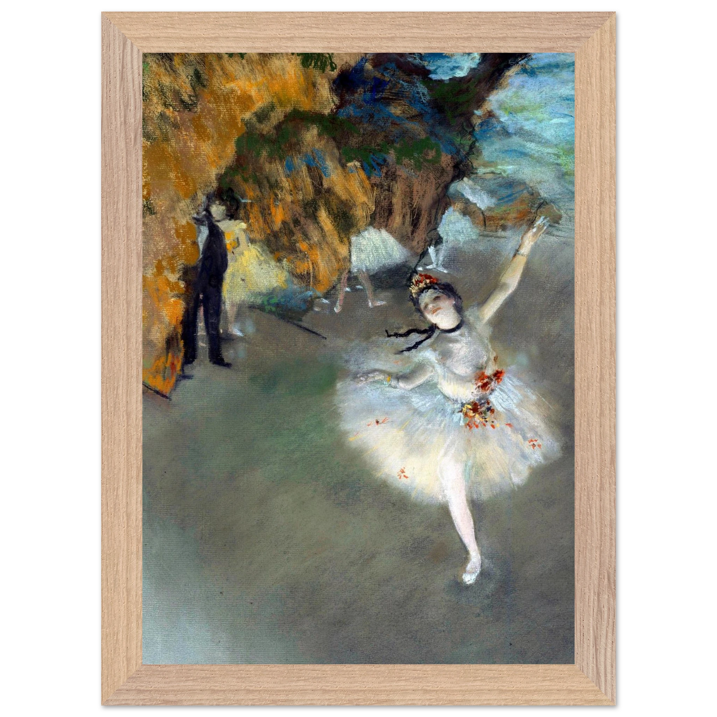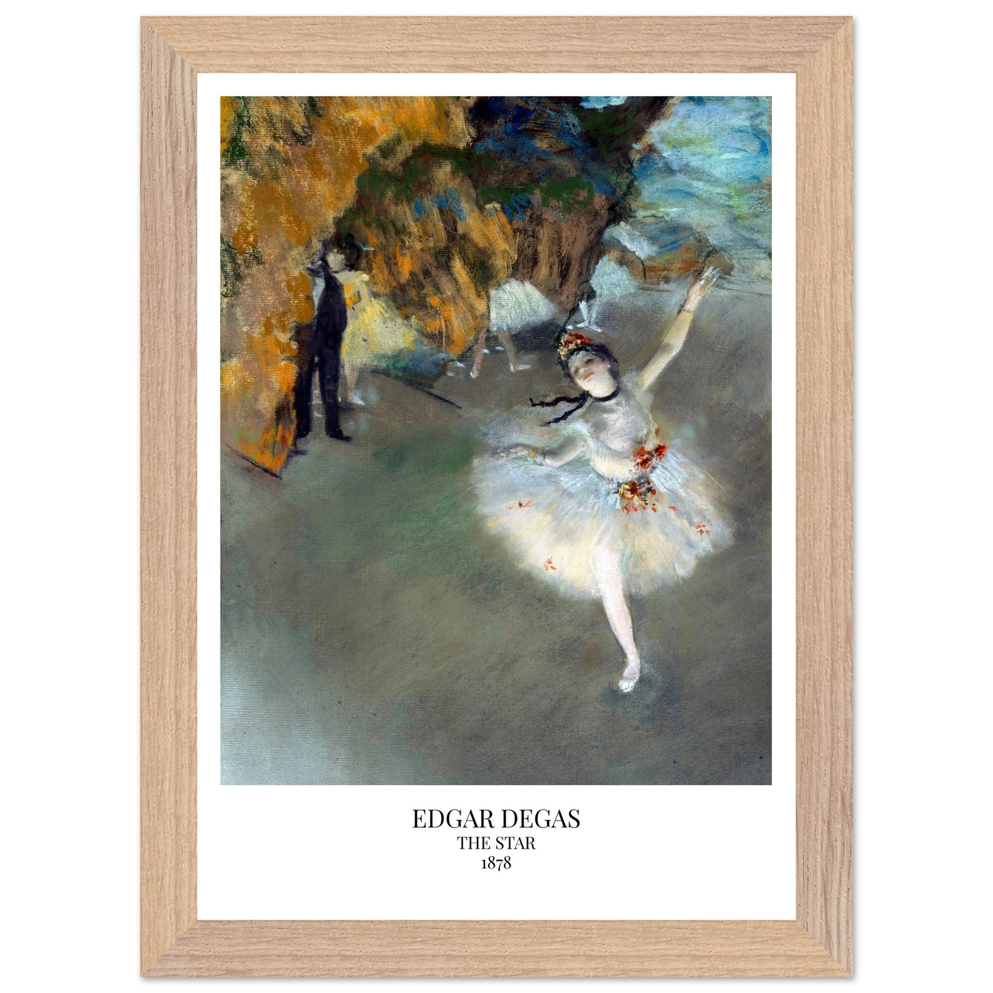 The Star (L'Étoile, ca. 1878) von Edgar Degas zeigt eine Primaballerina inmitten ihres Auftritts auf der Bühne, im vollen Rampenlicht. Mit feinem Gespür für Bewegung, Perspektive und Licht fängt Degas den magischen Moment der Aufführung ebenso ein wie die verborgene Welt hinter den Kulissen.