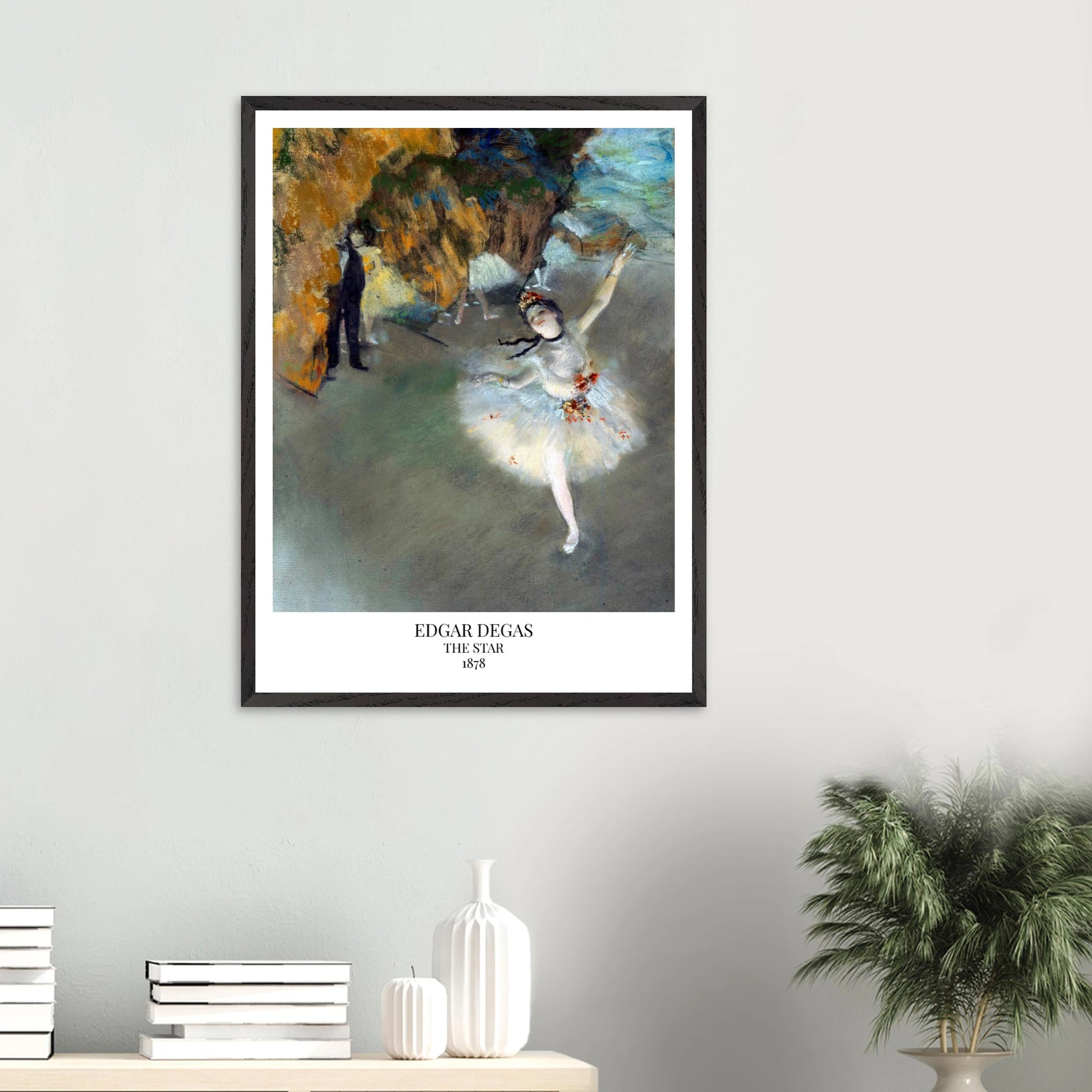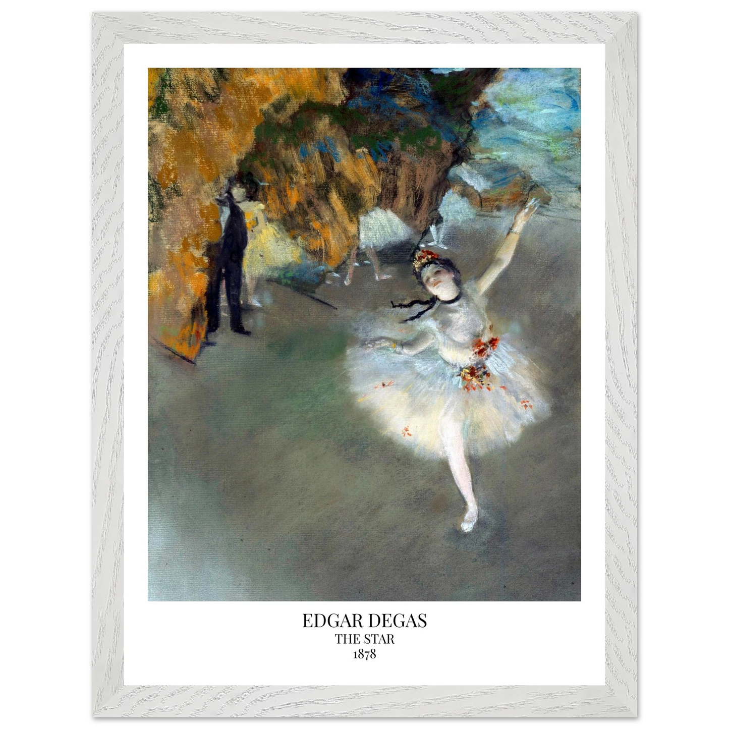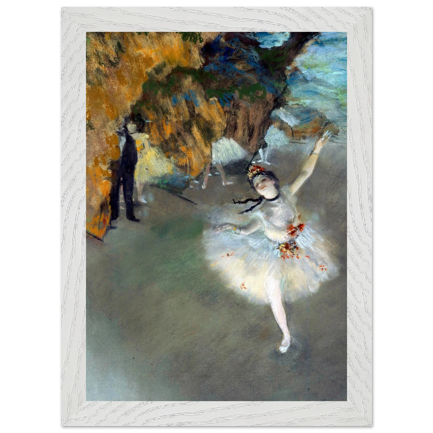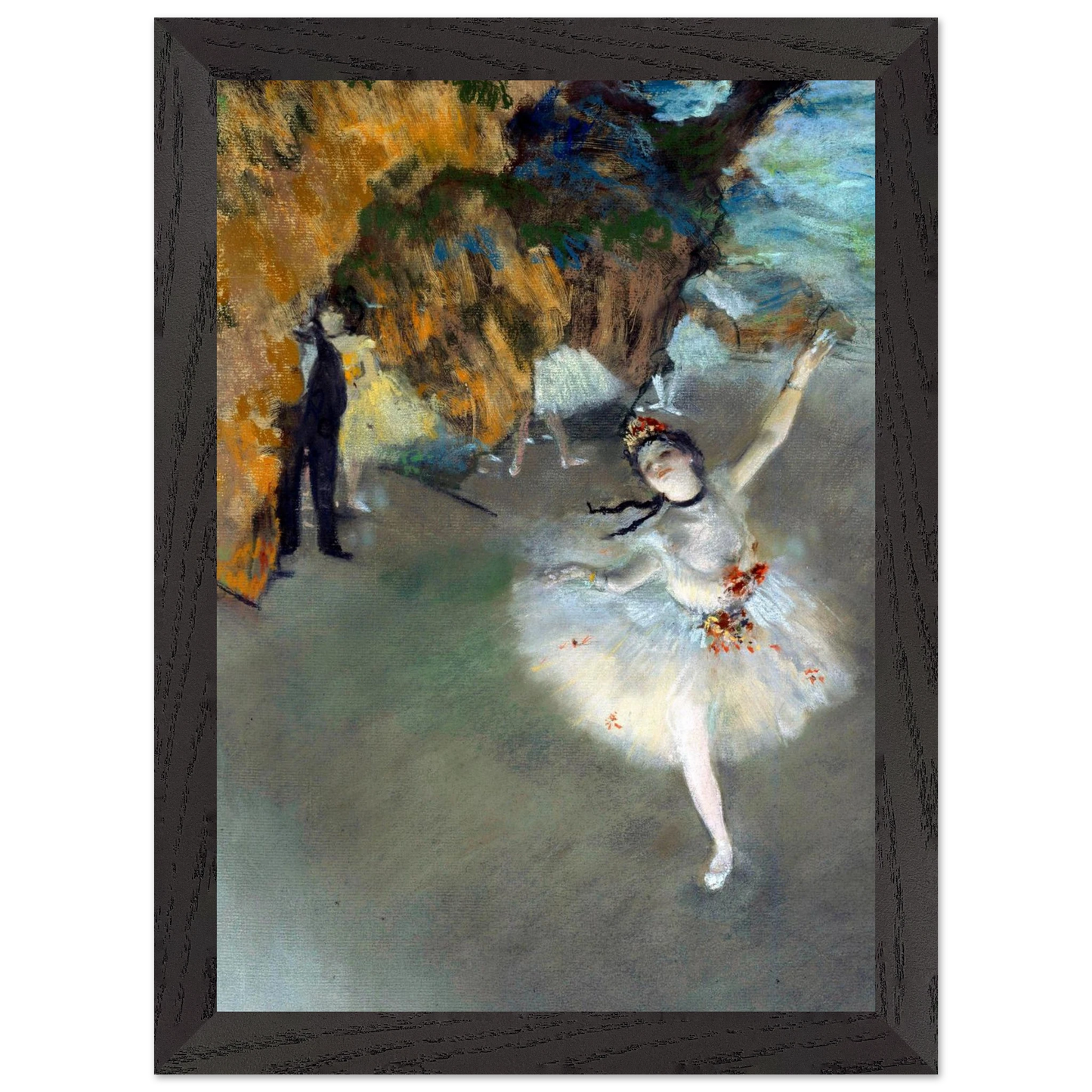 The Star (L'Étoile, ca. 1878) von Edgar Degas zeigt eine Primaballerina inmitten ihres Auftritts auf der Bühne, im vollen Rampenlicht. Mit feinem Gespür für Bewegung, Perspektive und Licht fängt Degas den magischen Moment der Aufführung ebenso ein wie die verborgene Welt hinter den Kulissen.