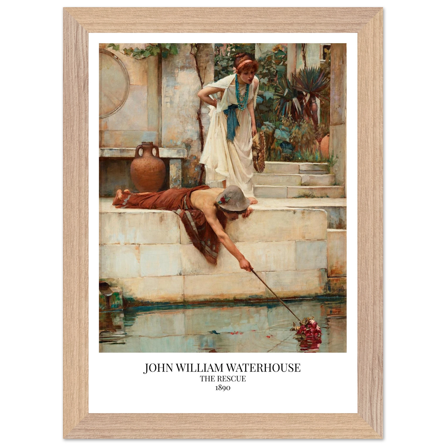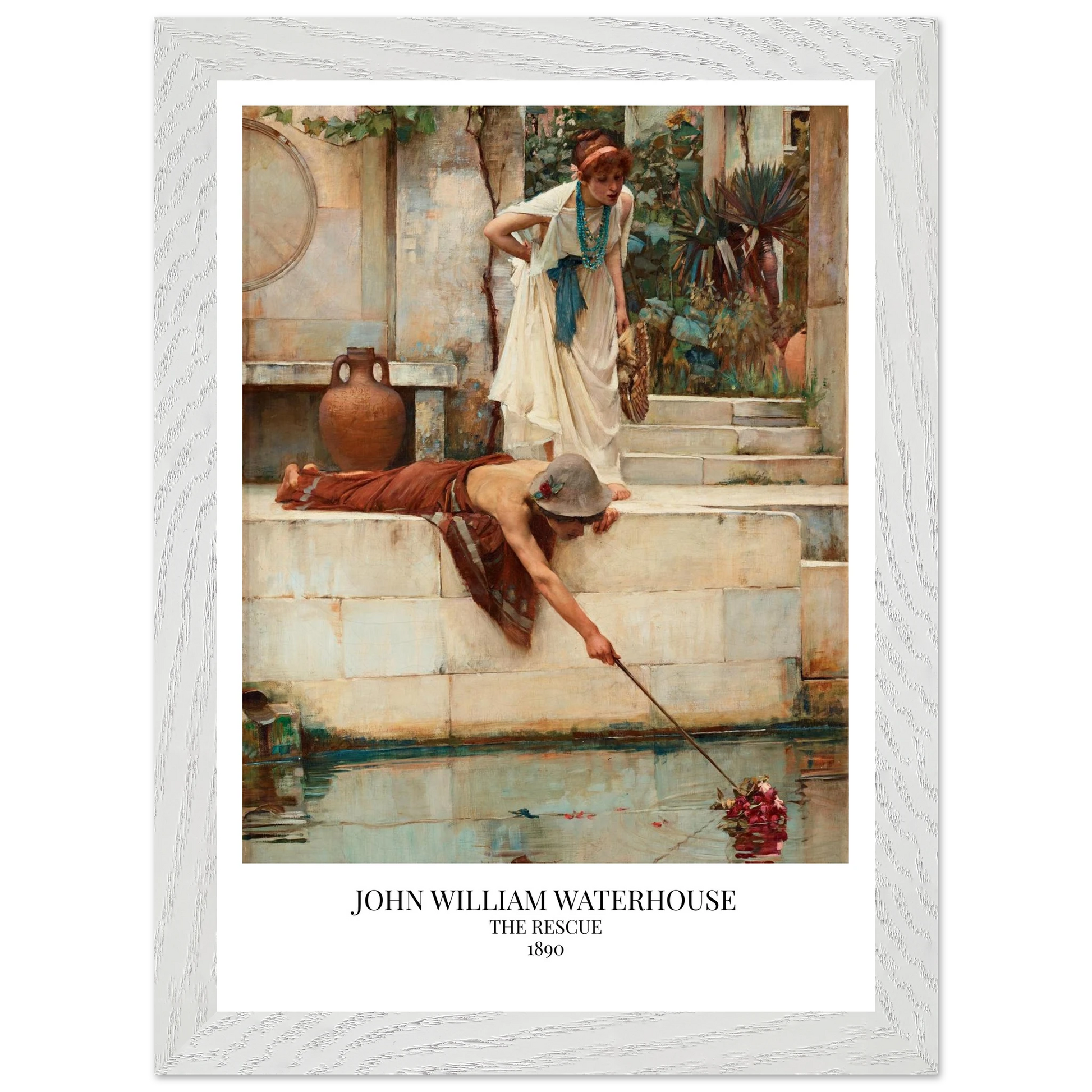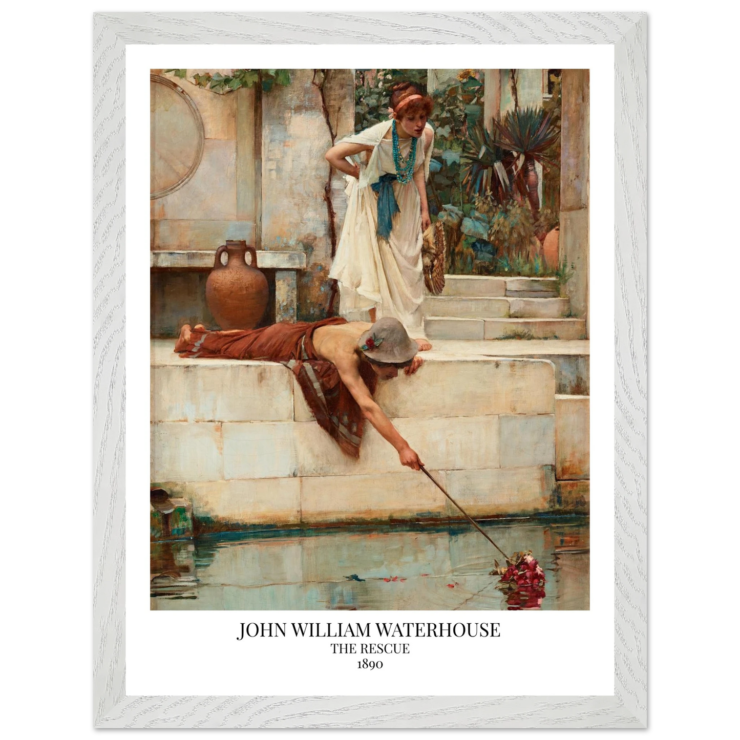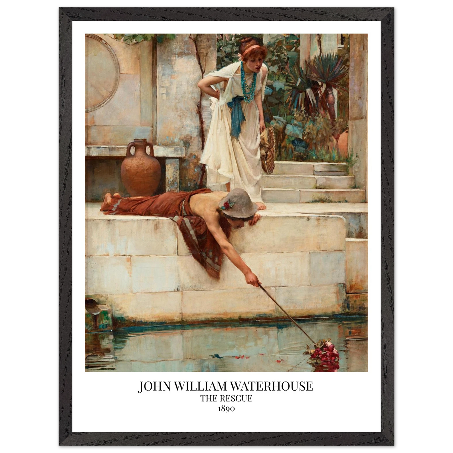 The Rescue (1890) von John William Waterhouse zeigt eine dramatische Szene voller Gefühl und Bewegung. Ein junger Mann rettet eine Frau aus stürmischer See – ein Motiv, das Heldentum, Romantik und mythologische Anklänge miteinander verbindet. Die fließenden Stoffe, die dynamische Komposition und das Spiel von Licht und Wasser sind typisch für Waterhouses Stil. Das Gemälde vereint klassische Erzählkunst mit präraffaelitischer Detailverliebtheit und emotionaler Tiefe.