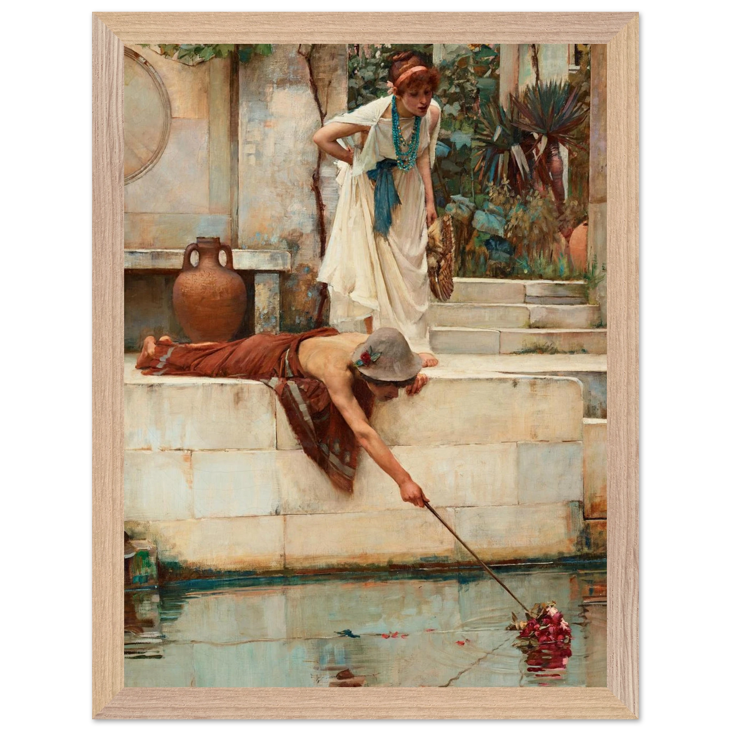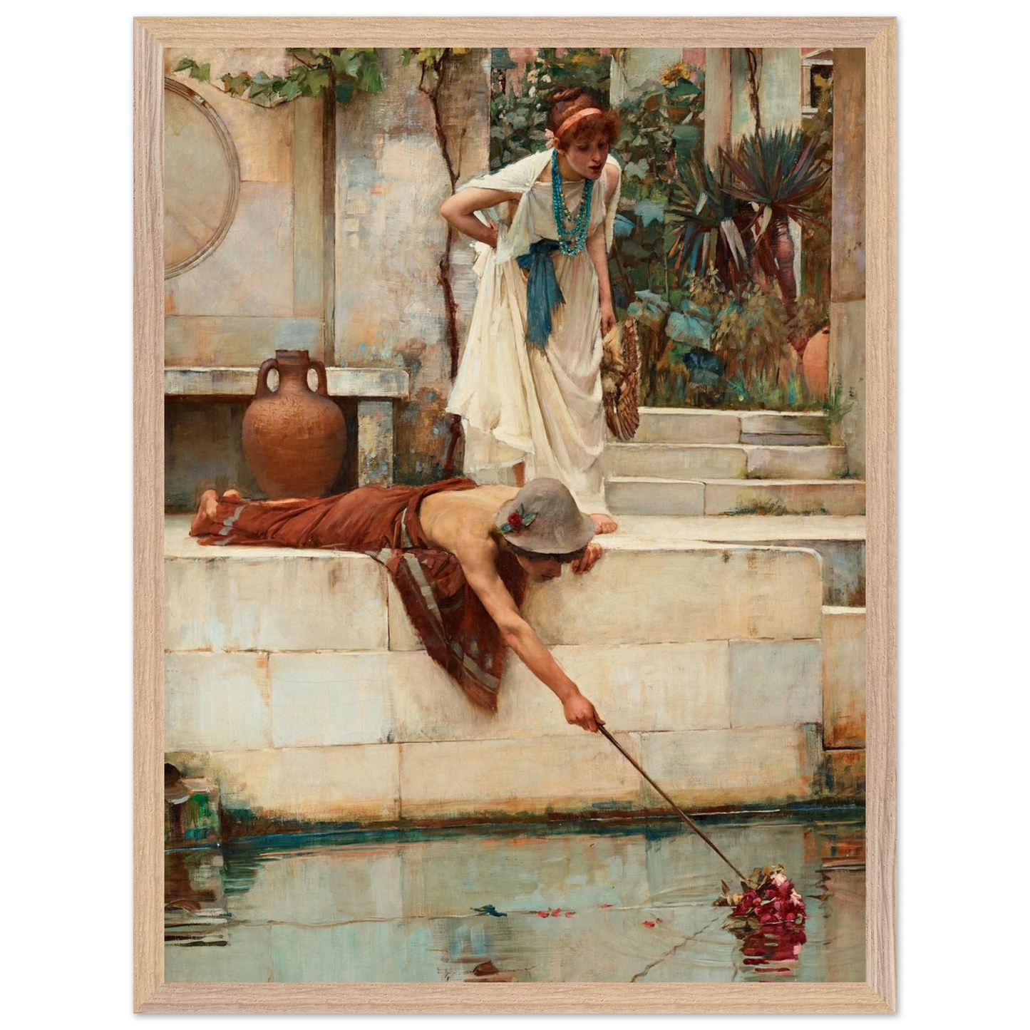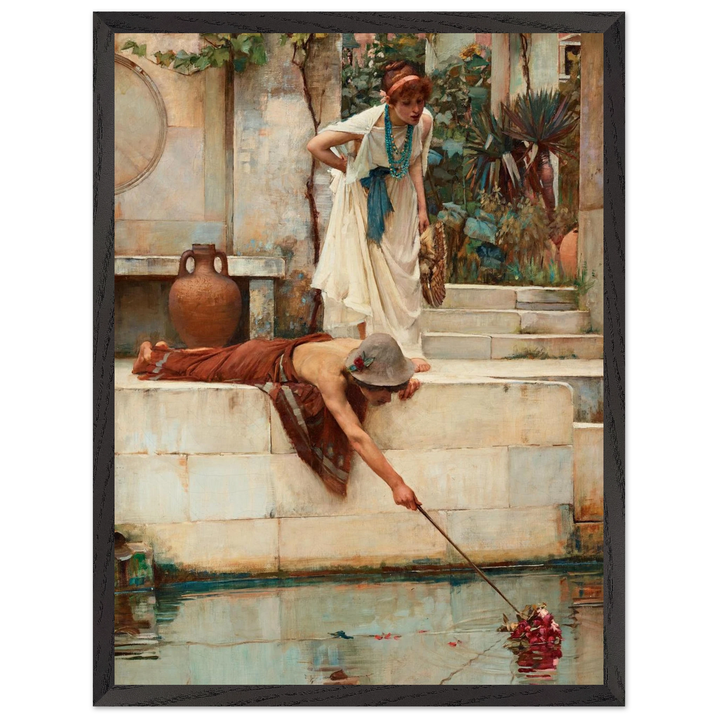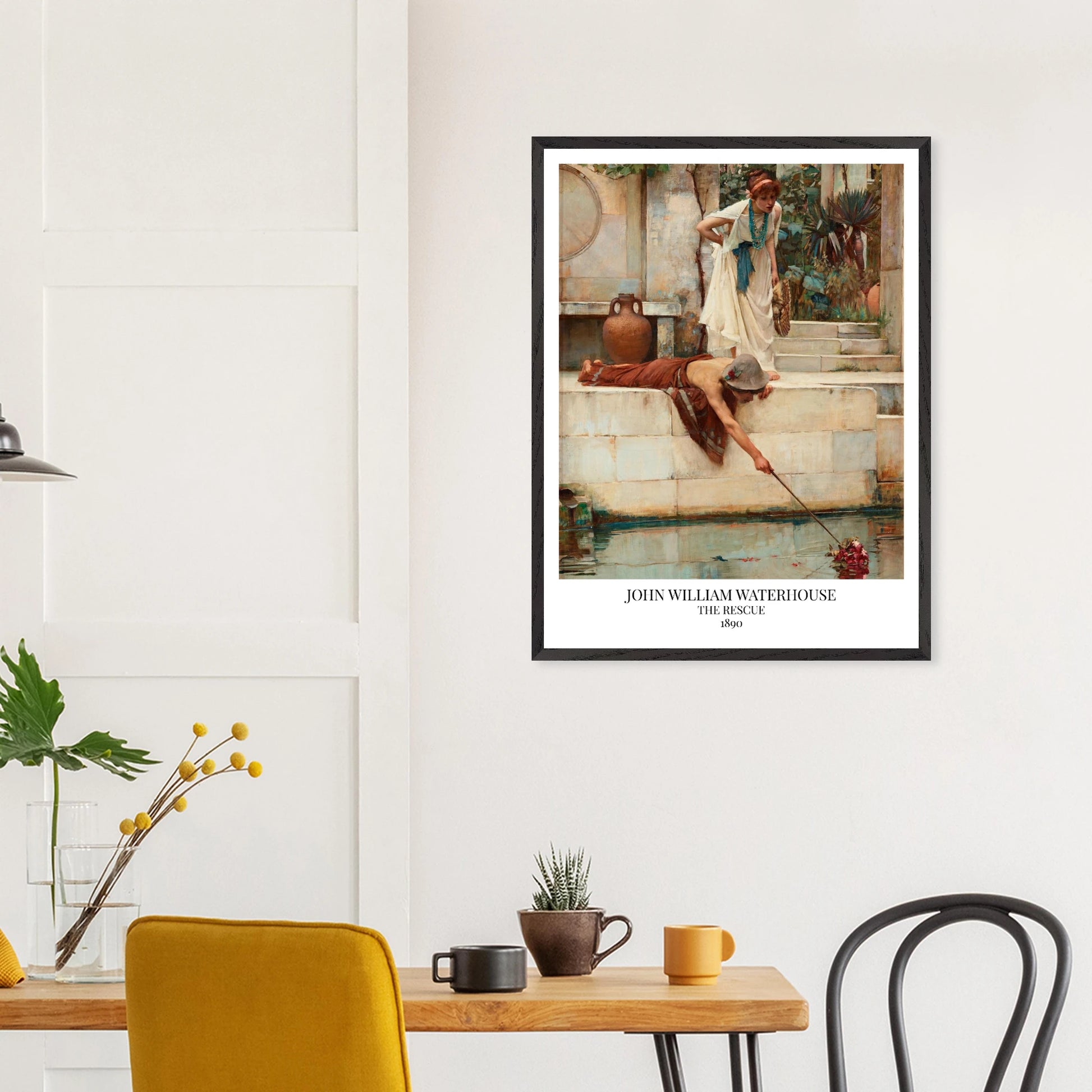 The Rescue (1890) von John William Waterhouse zeigt eine dramatische Szene voller Gefühl und Bewegung. Ein junger Mann rettet eine Frau aus stürmischer See – ein Motiv, das Heldentum, Romantik und mythologische Anklänge miteinander verbindet. Die fließenden Stoffe, die dynamische Komposition und das Spiel von Licht und Wasser sind typisch für Waterhouses Stil. Das Gemälde vereint klassische Erzählkunst mit präraffaelitischer Detailverliebtheit und emotionaler Tiefe.