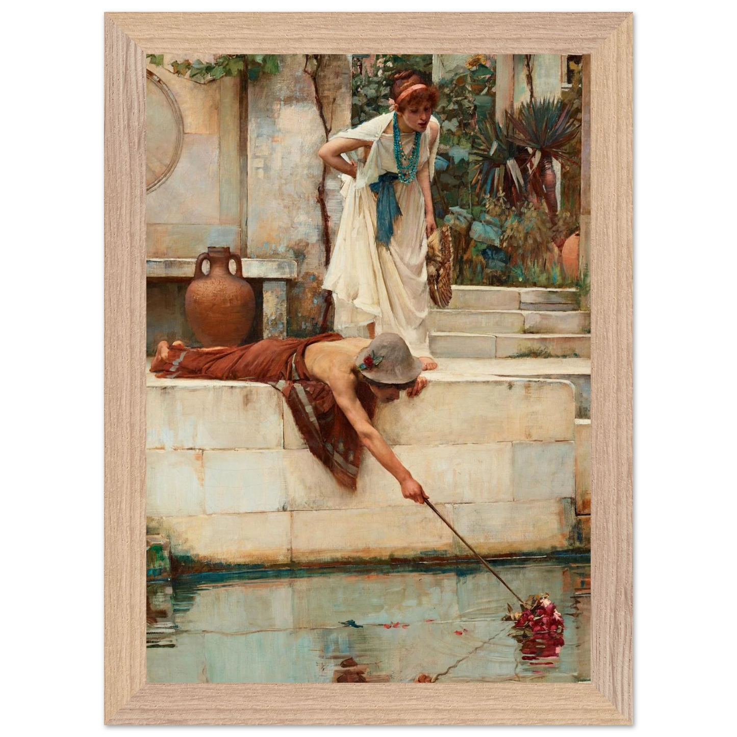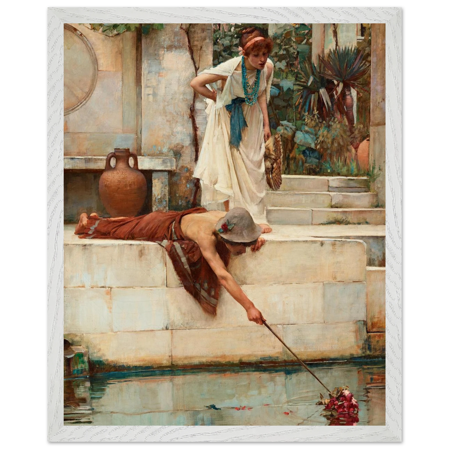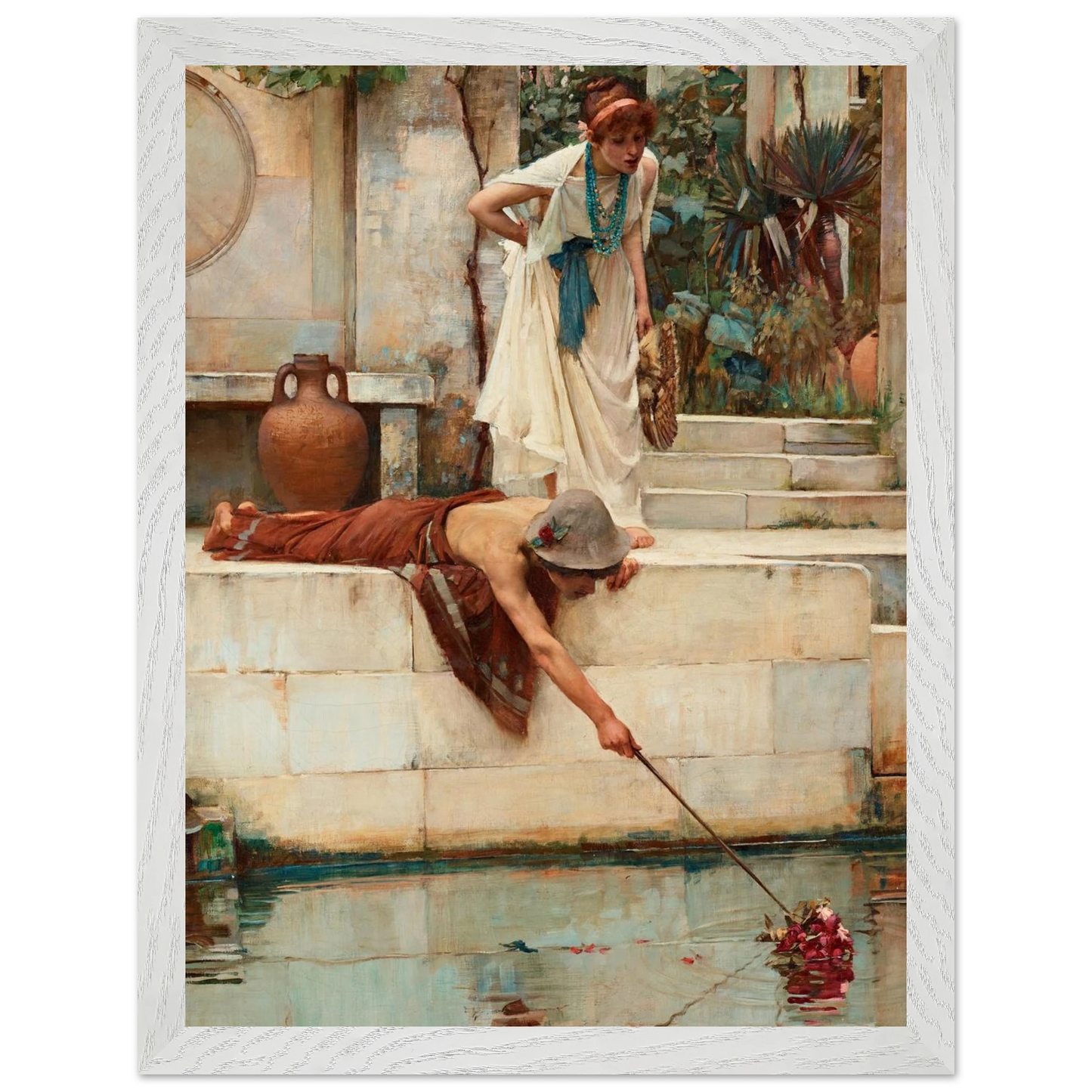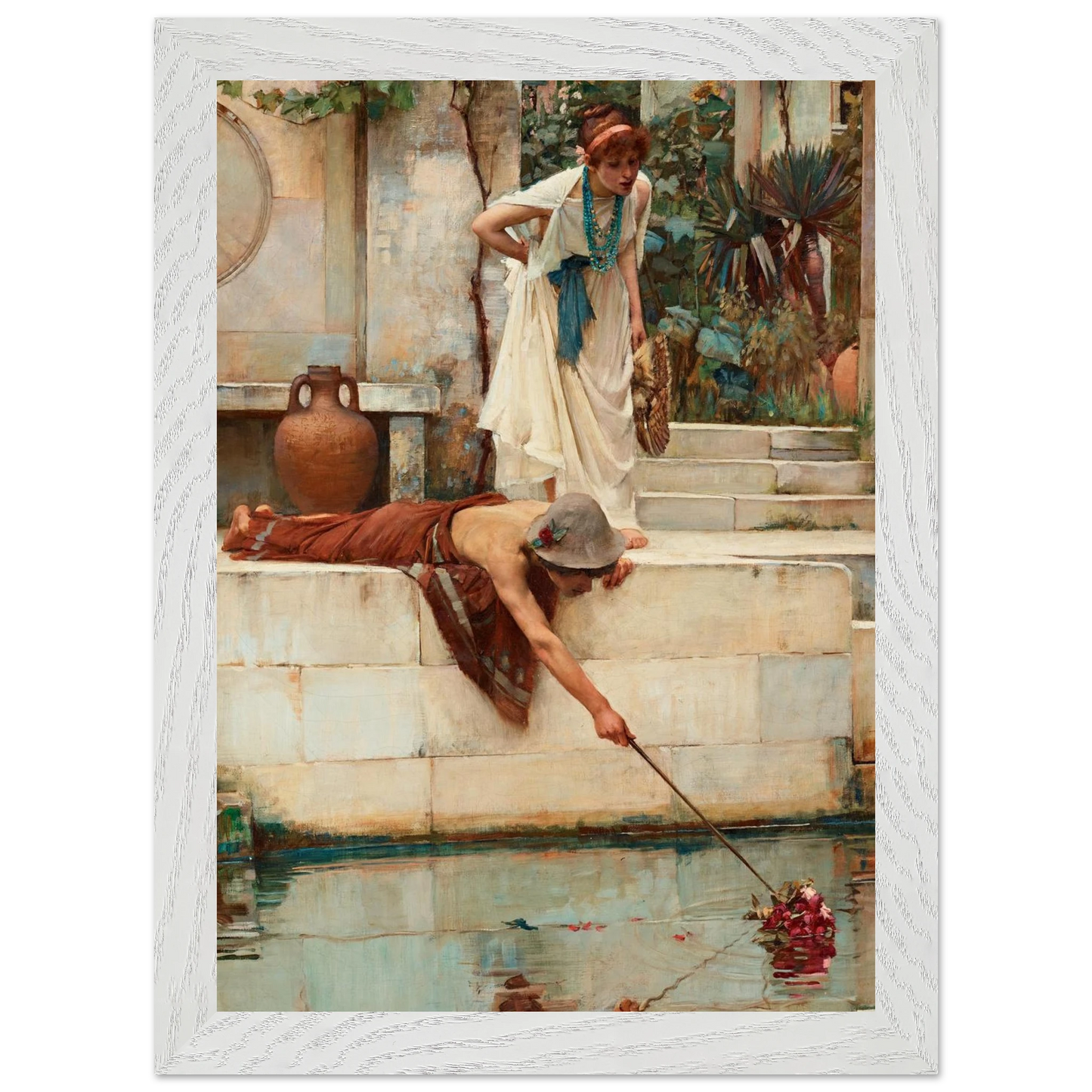 The Rescue (1890) von John William Waterhouse zeigt eine dramatische Szene voller Gefühl und Bewegung. Ein junger Mann rettet eine Frau aus stürmischer See – ein Motiv, das Heldentum, Romantik und mythologische Anklänge miteinander verbindet. Die fließenden Stoffe, die dynamische Komposition und das Spiel von Licht und Wasser sind typisch für Waterhouses Stil. Das Gemälde vereint klassische Erzählkunst mit präraffaelitischer Detailverliebtheit und emotionaler Tiefe.