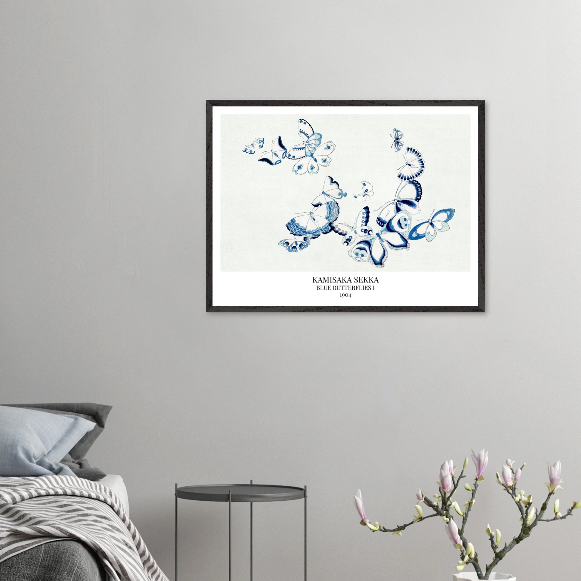 Kamisaka Sekka - Blue Butterflies I - gerahmter Druck
