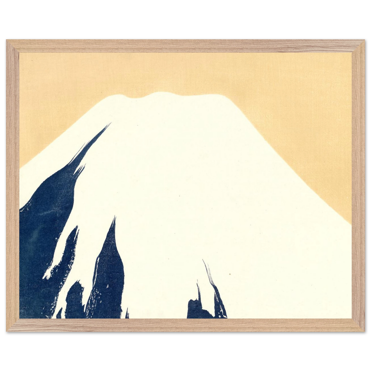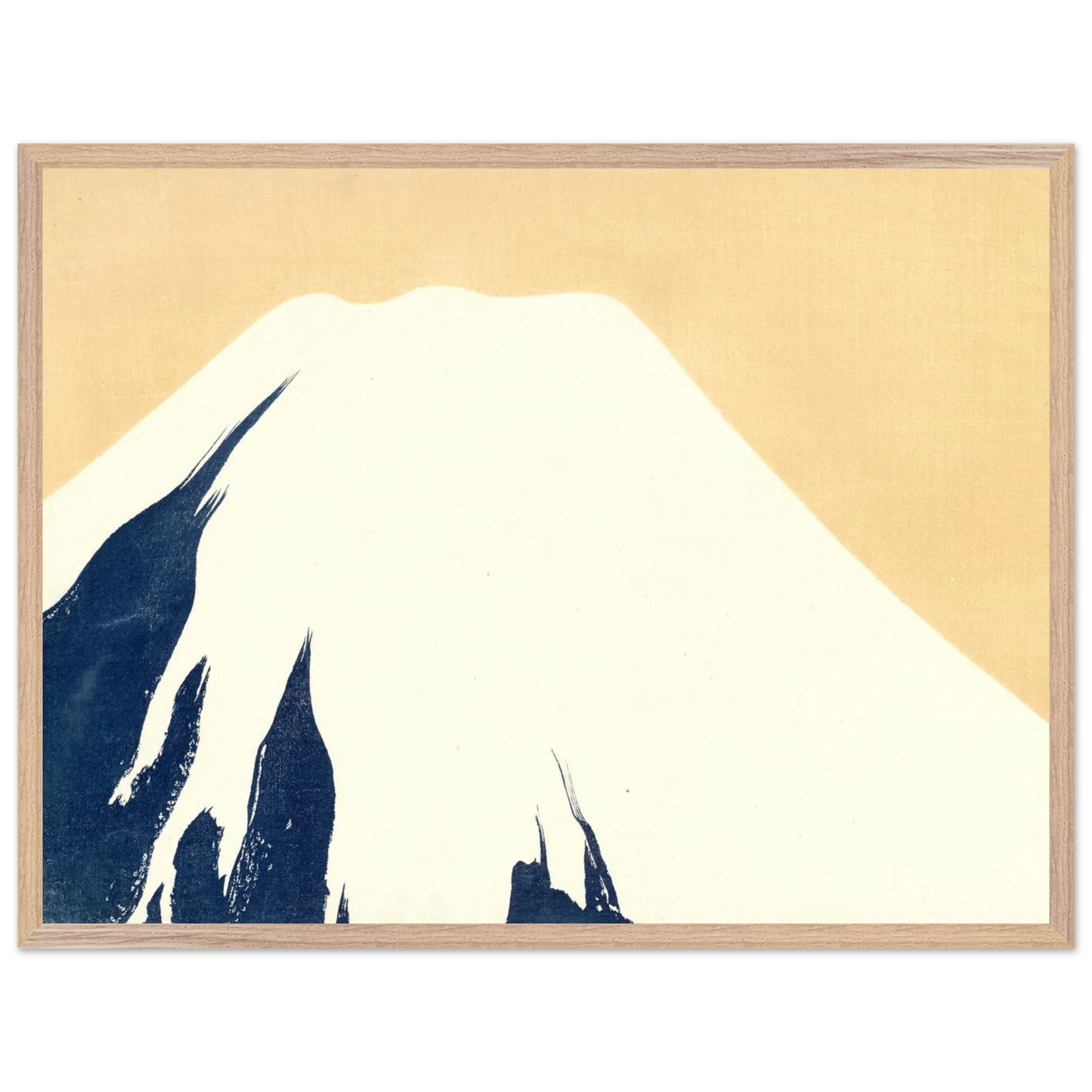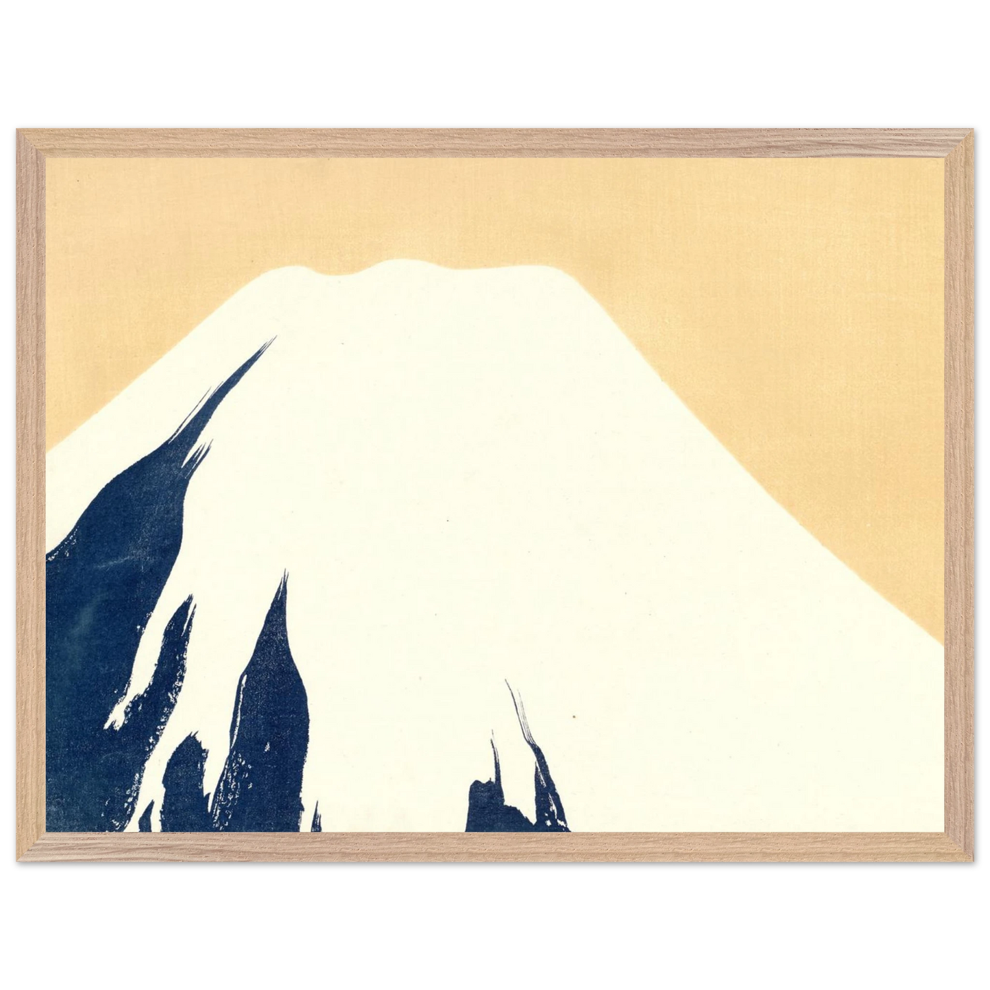 Mount Fuji (1910) von Kamisaka Sekka ist ein Farbholzschnitt aus der Serie 'Momoyogusa' - im Deutschen 'Blumen aus hundert Welten', der den ikonischen Vulkan in stilisierter Form darstellt. Mit klaren Linien, sanften Farbverläufen und dekorativer Harmonie verbindet das Werk klassische japanische Landschaftsmalerei mit modernem Design.