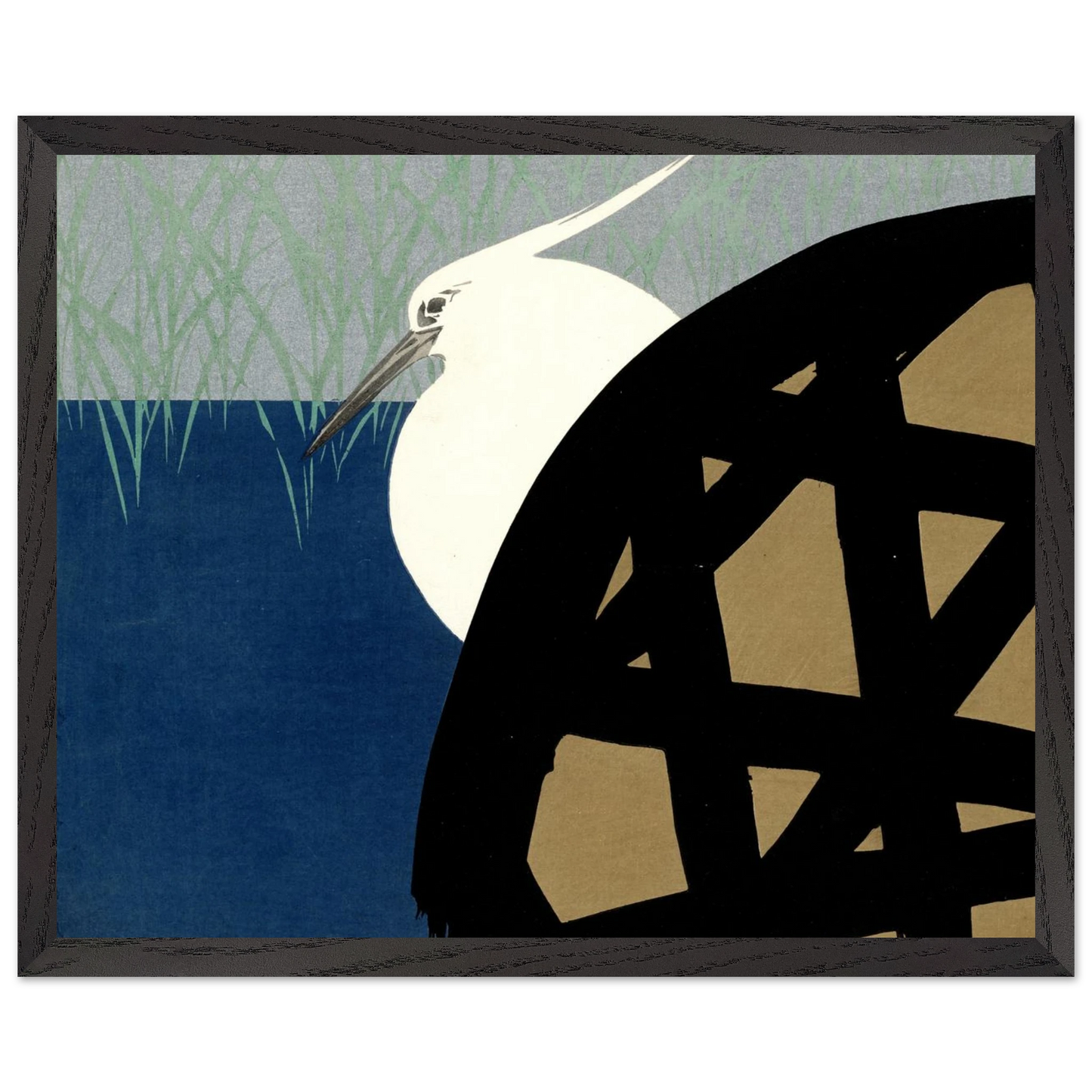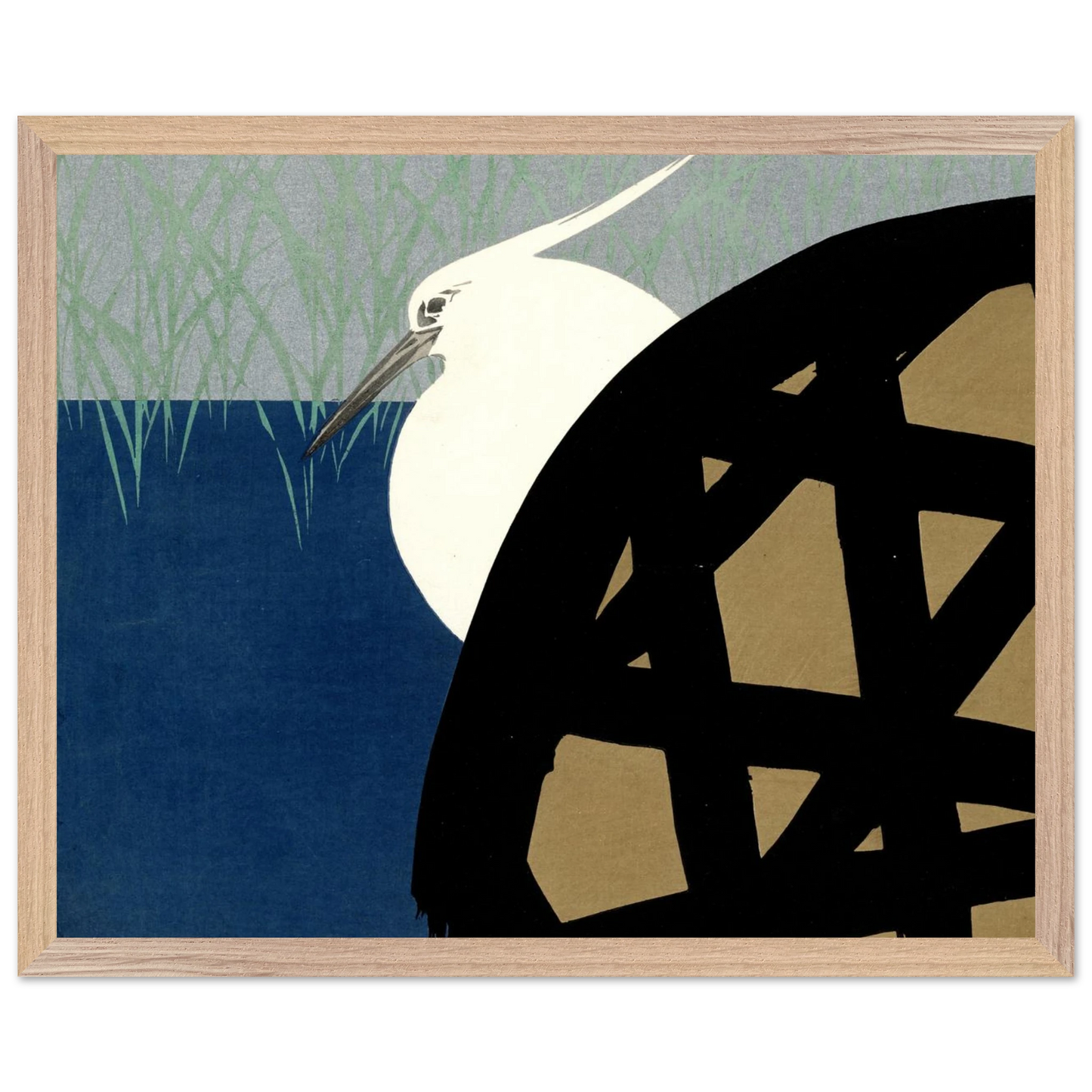 White Heron – Shirasagi (1910) von Kamisaka Sekka ist ein eleganter Farbholzschnitt aus der Serie 'Momoyogusa' - im Deutschen 'Blumen aus hundert Welten', der einen weißen Reiher in ruhiger Haltung zeigt. Mit reduzierter Form und harmonischer Farbgebung verkörpert das Werk klassische japanische Naturästhetik und stille Anmut.