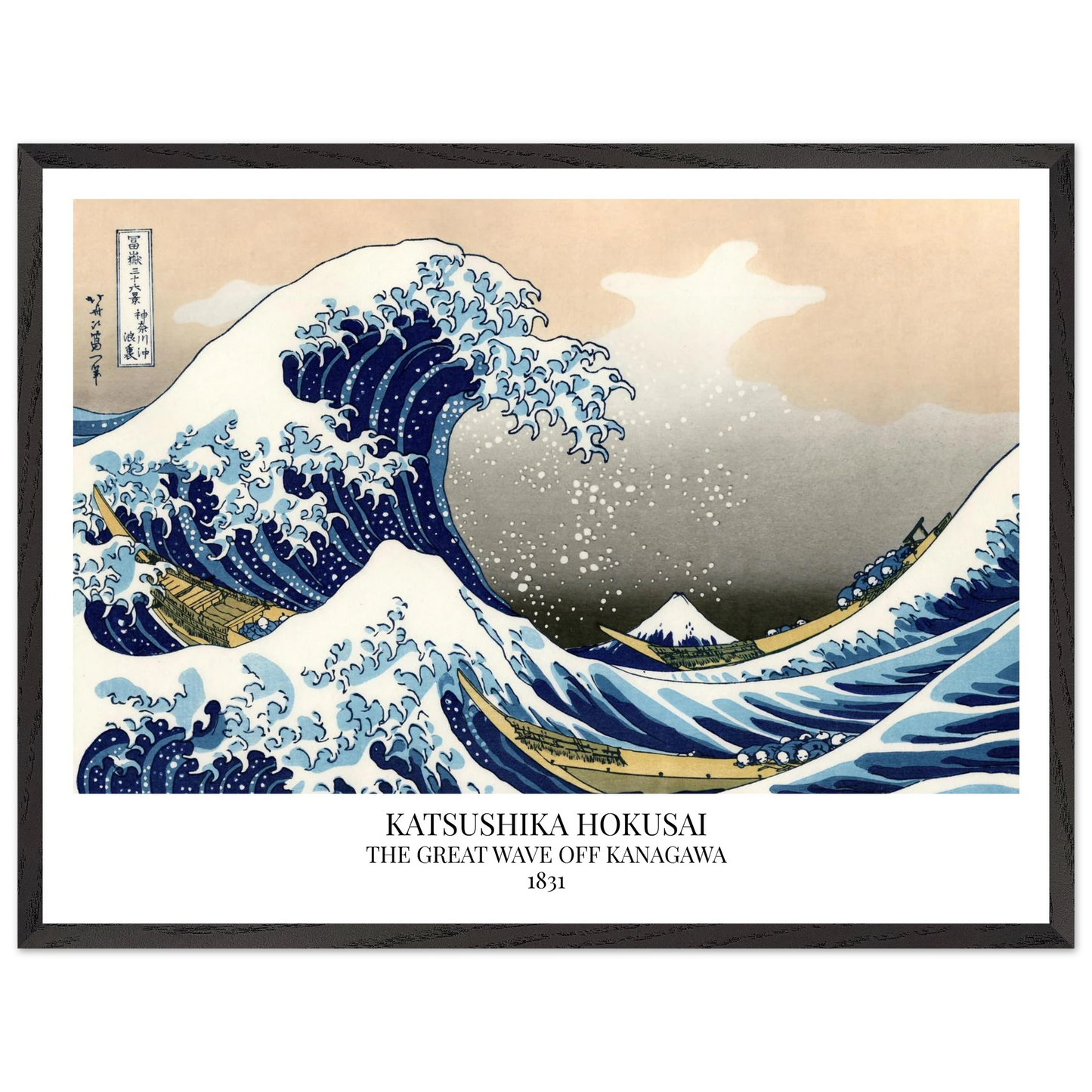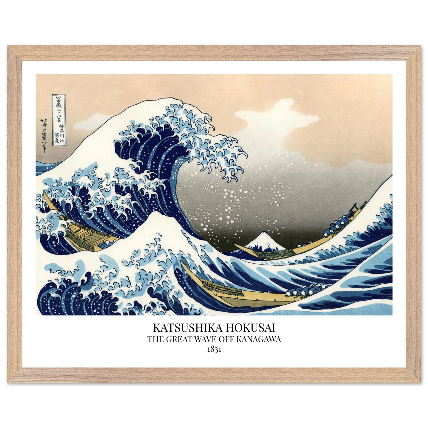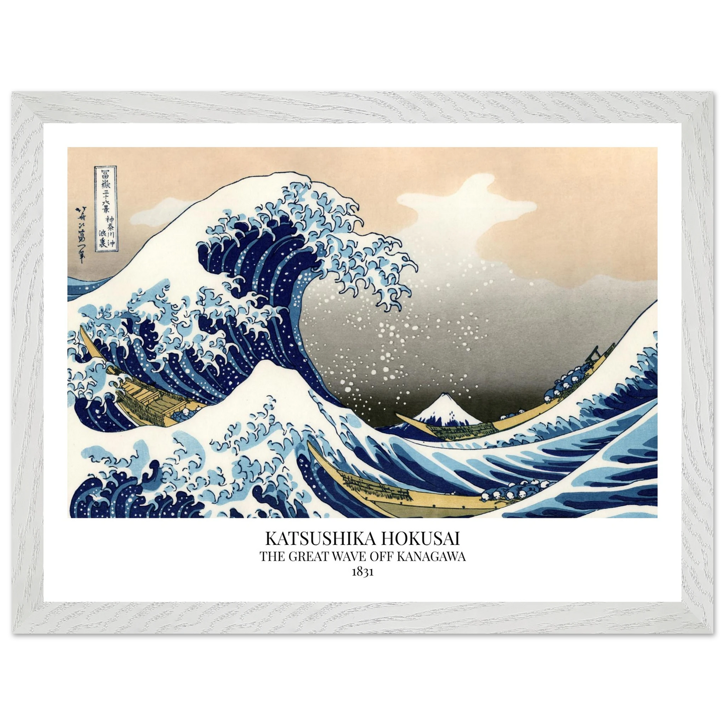 The Great Wave off Kanagawa (1831) von Katsushika Hokusai ist eines der bekanntesten Werke der japanischen Kunstgeschichte und das berühmteste Blatt aus der Serie 'Fugaku Sanjūrokkei' - im Deutschen '36 Ansichten des Mount Fuji'. Die riesige, stilisierte Welle türmt sich bedrohlich über Fischerboote auf, während im Hintergrund der ruhige Mount Fuji zu sehen ist. Mit dramatischer Komposition, kräftigen Linien und symbolischer Tiefe steht das Werk für die Beziehung zwischen Mensch und Natur – kraftvoll, erhaben und zeitlos.