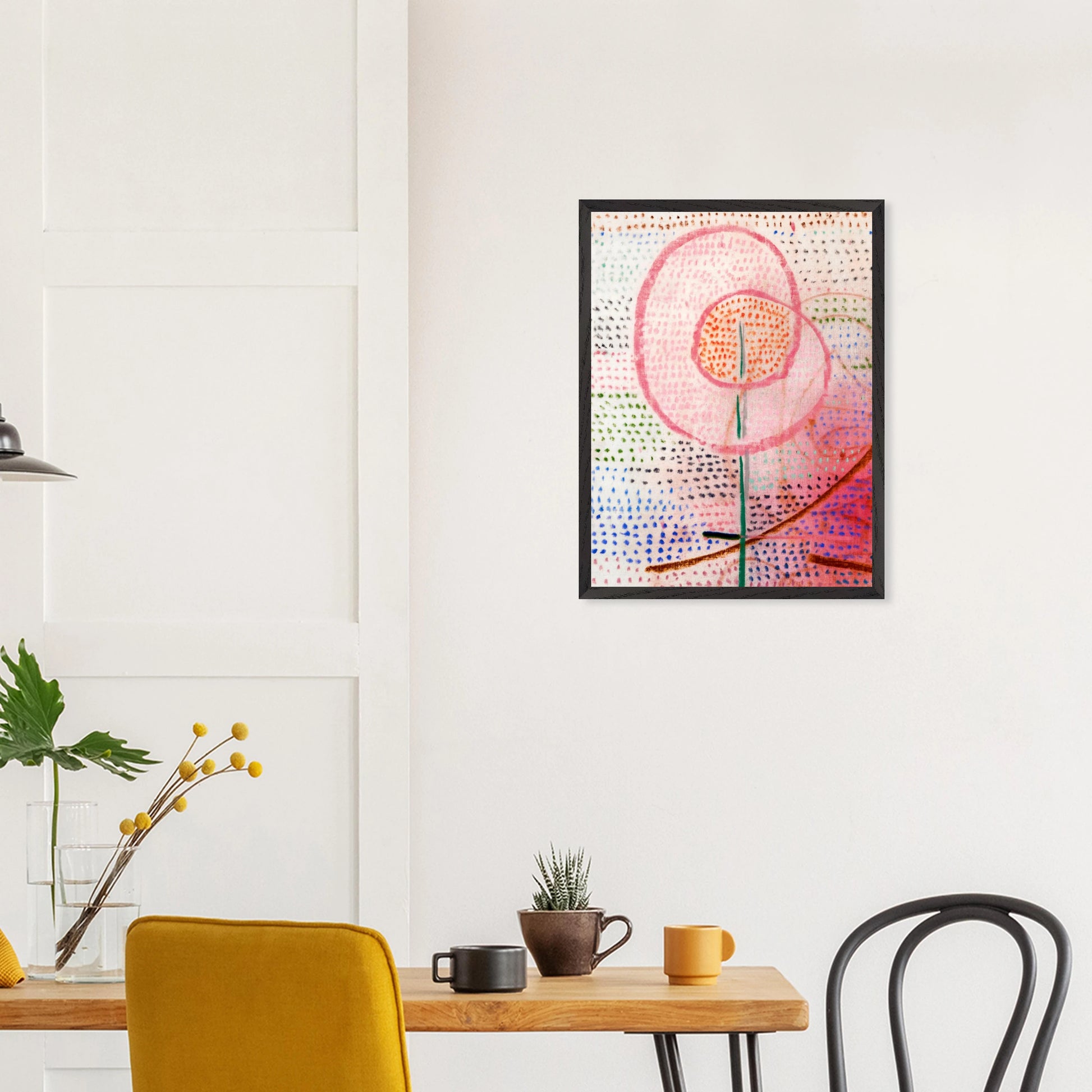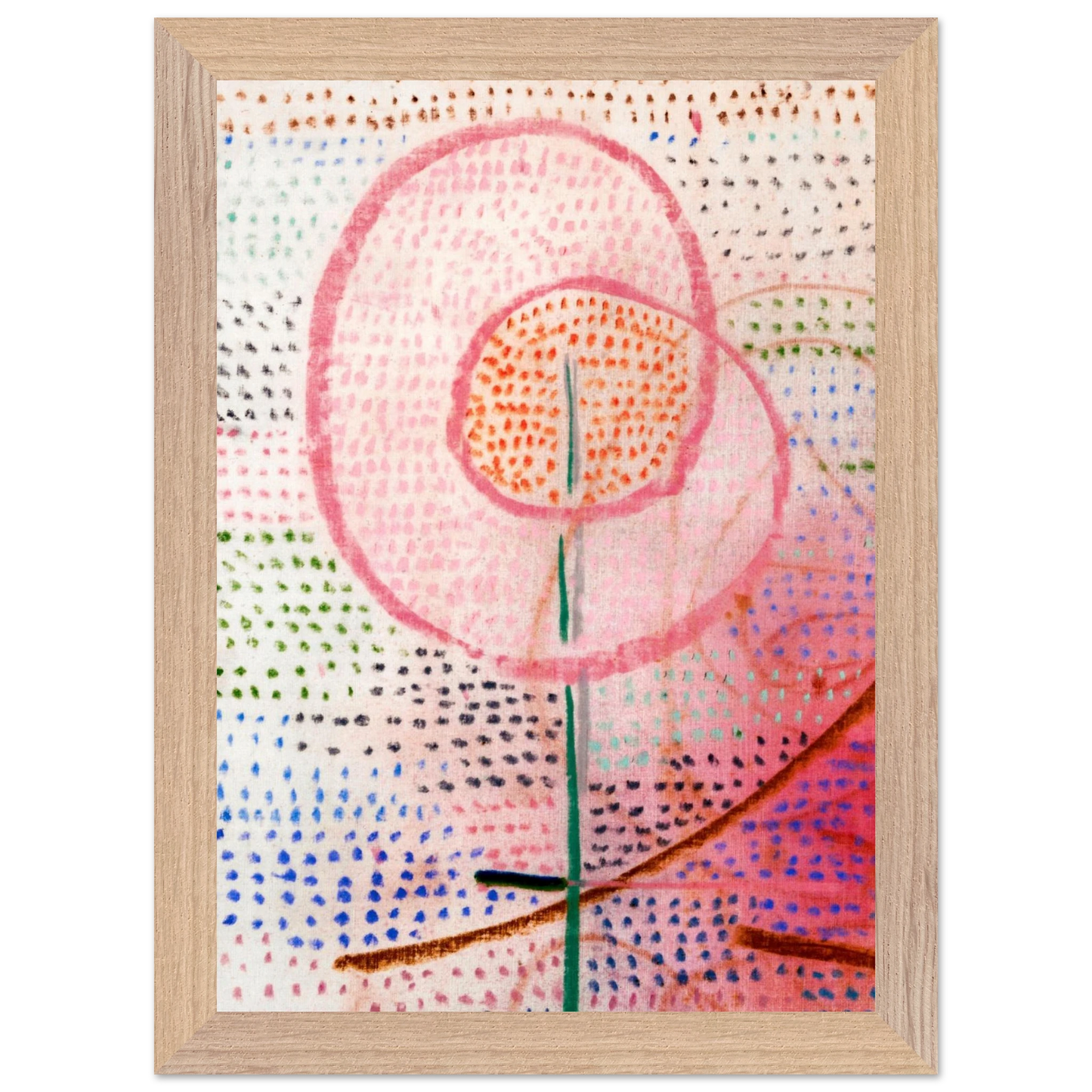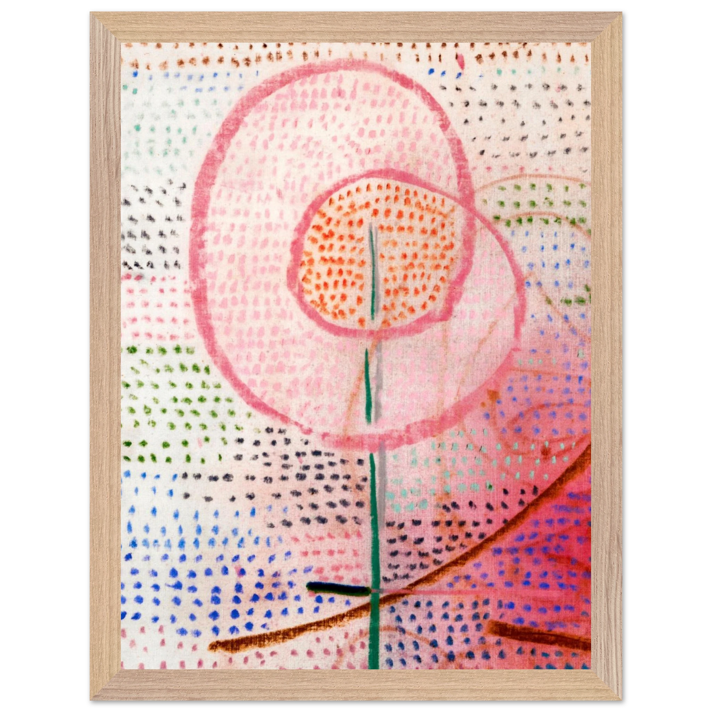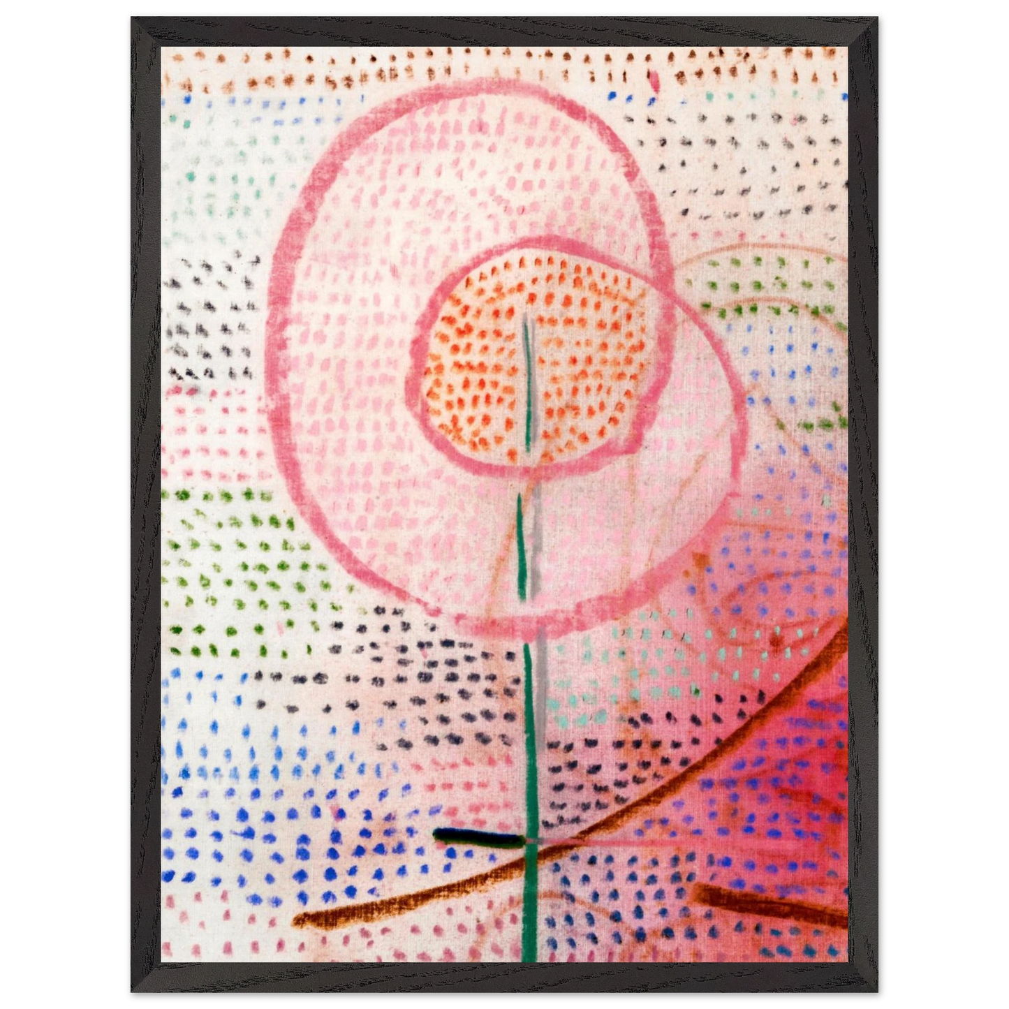 Blossoming (1934) von Paul Klee zeigt eine stilisierte, abstrakte Pflanzenform, die inmitten eines strukturierten, farblich fein abgestuften Hintergrunds zu blühen scheint. Das Werk vereint Naturmotivik mit konstruktiver Ordnung und symbolischer Tiefe – ein leises Sinnbild für Wachstum, Wandlung und inneres Leben in Klee’s später Schaffensphase.