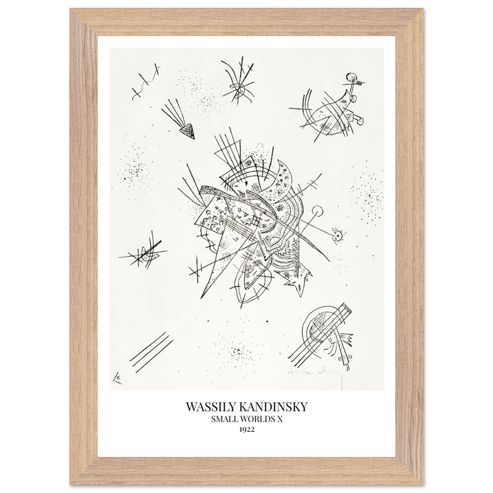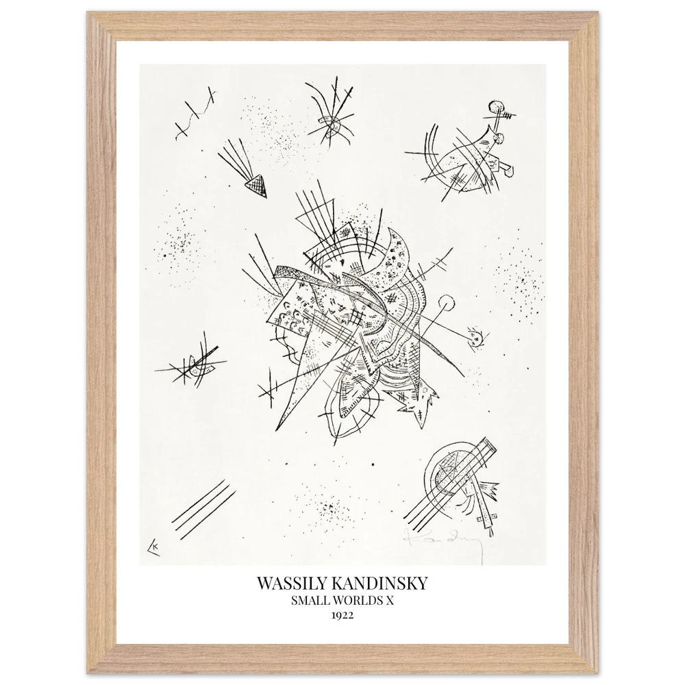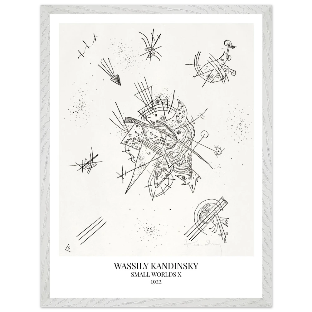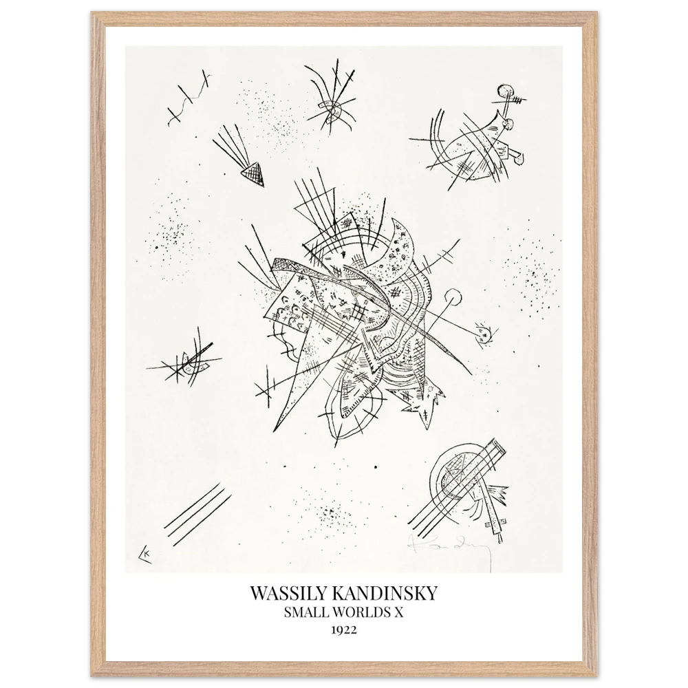 Small Worlds X (1922) von Wassily Kandinsky ist der zehnte Druck der zwölfteiligen Serie Kleine Welten und gehört zu den Lithografien. Das Werk zeigt eine lebendige Komposition aus bunten, teils schwebenden Formen, Linien und Flächen, die an musikalische Rhythmen und kosmische Bewegungen erinnern. In Small Worlds X vereint Kandinsky Farbe, Dynamik und Abstraktion zu einer poetisch-expressiven Bildwelt.